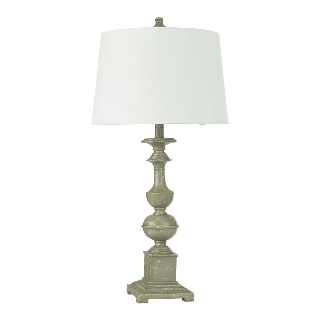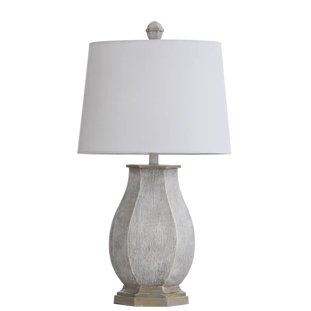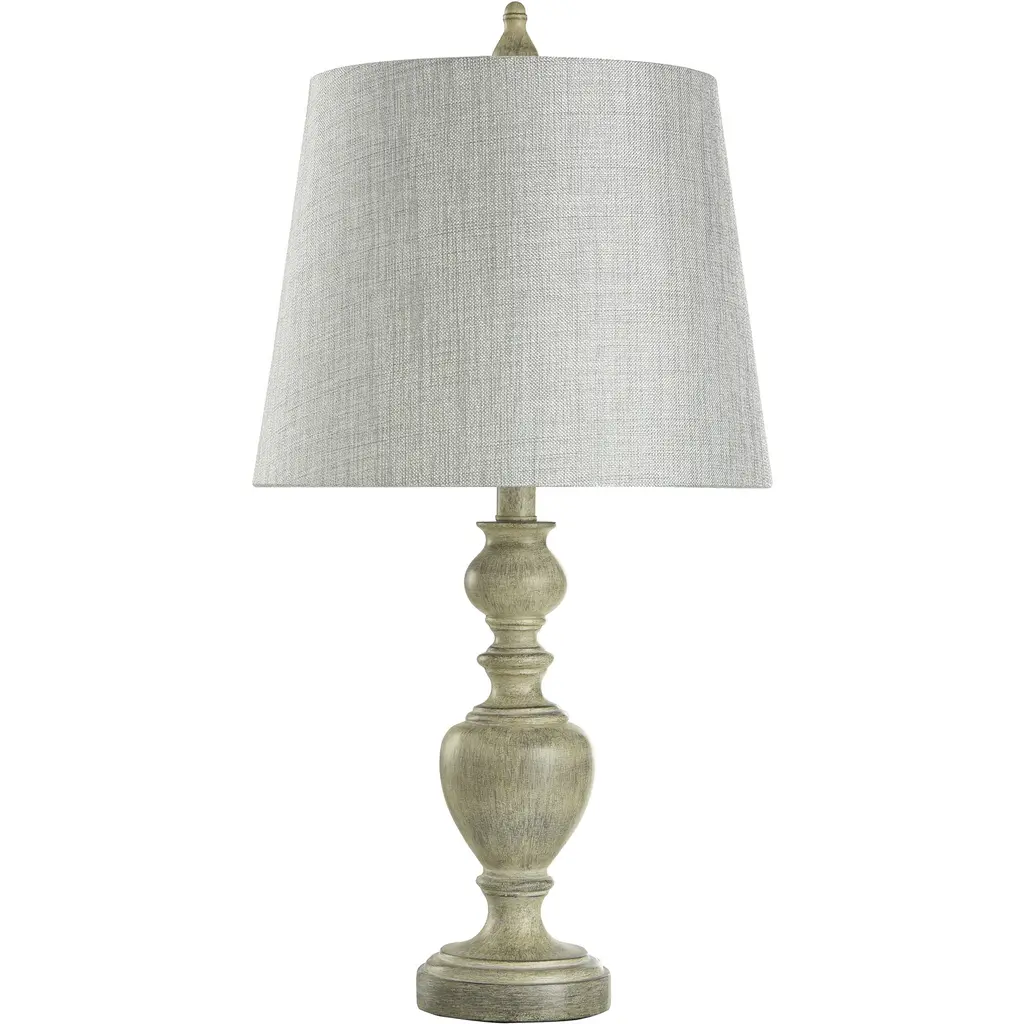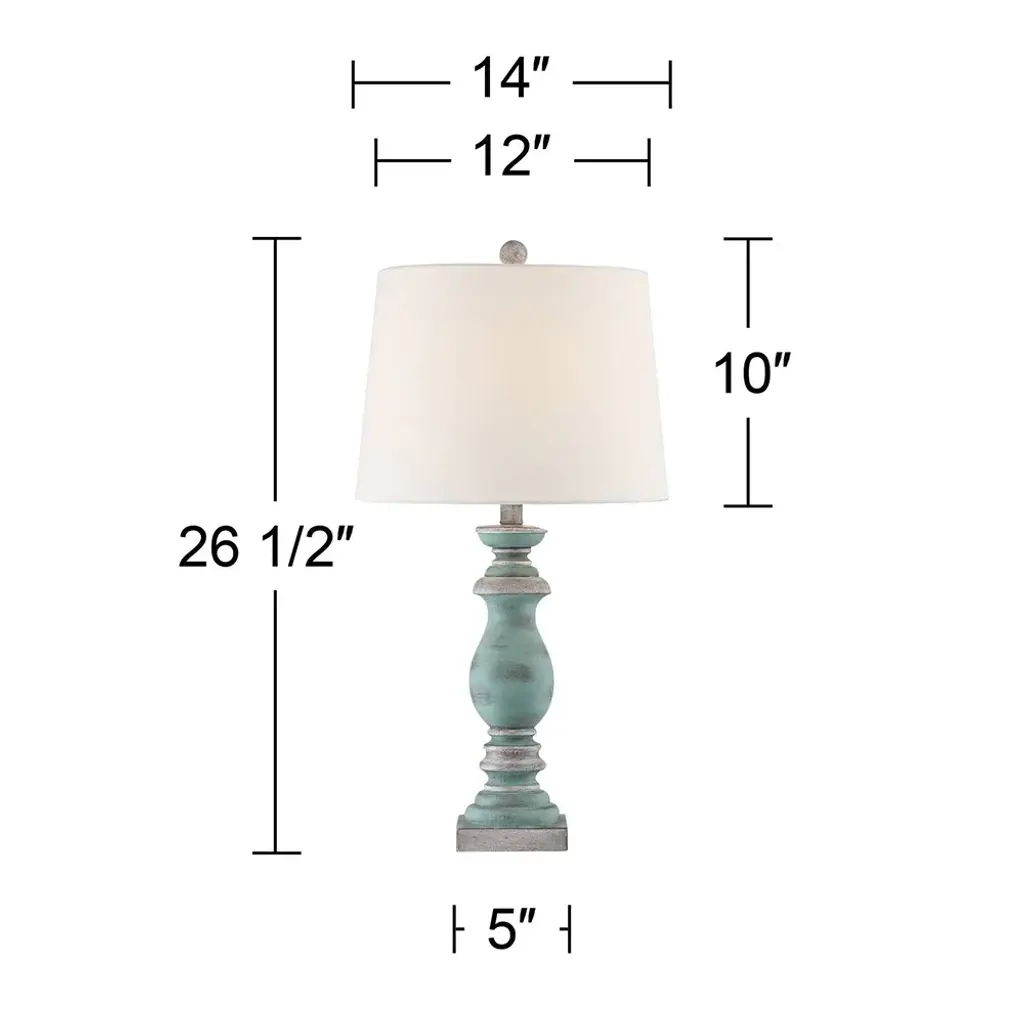 Farmhouse style is on full display in this traditional table lamp. With a blue denim finish covering the polyresin frame, the body presents an appealing rustic aesthetic. The off-white shade, made from polyester and linen, includes a white trim that offers a stylish accent. Any office, bedroom or living room will get a decorative boost from this traditional lamp.Features:Rustic/ Farmhouse/ TraditionalIncludes an On-off Switch switch located at the neck of the lampShade Shape: BellRequires 1 x 60 watt Incandescent bulb(s) ( not included)Due to lighting and monitor differences, actual colors and finishes may vary slightly from what appears online.