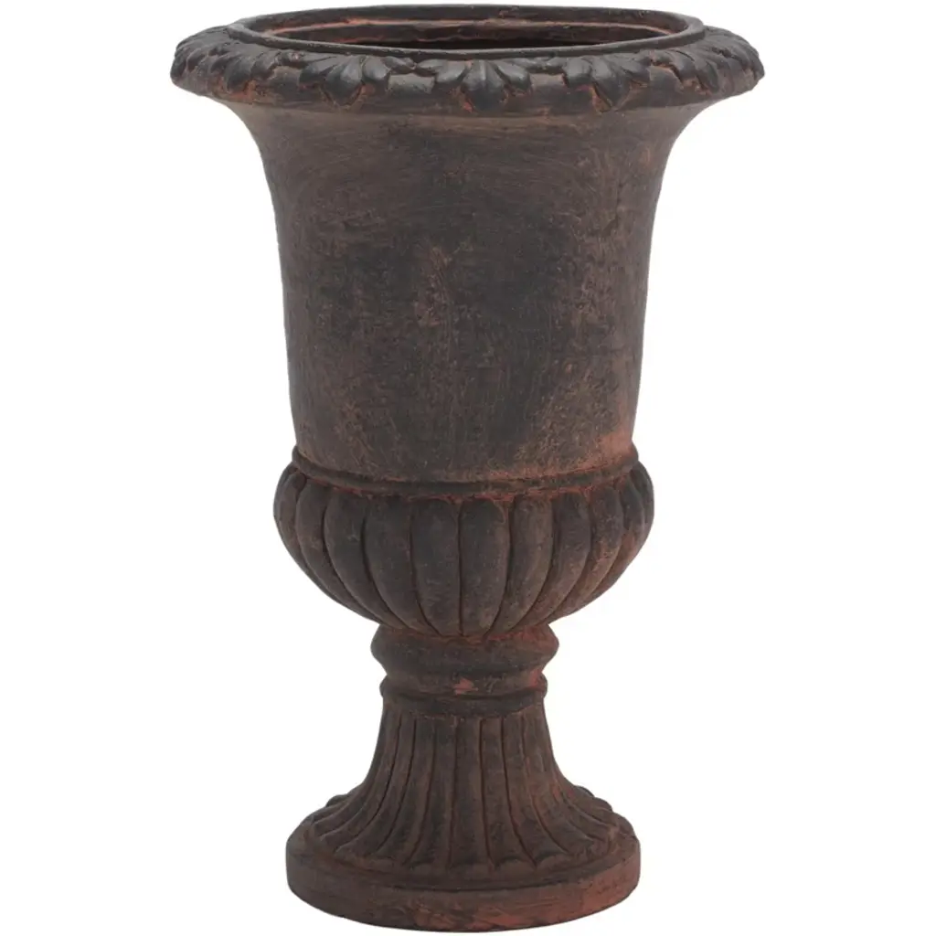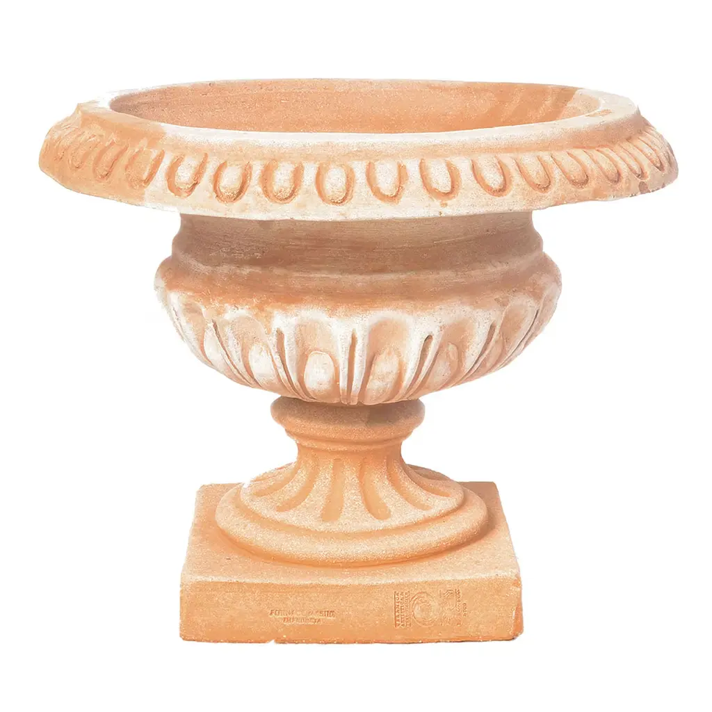 This exceptional vase captures the signature allure of clay sourced from Impruneta, renowned for its exceptional frost-proof quality. Ideal to uplift gates or columns, this vase displays a sinuous goblet-shape richly adorned with classic-style decoration for a striking decorative statement. CAT certified.