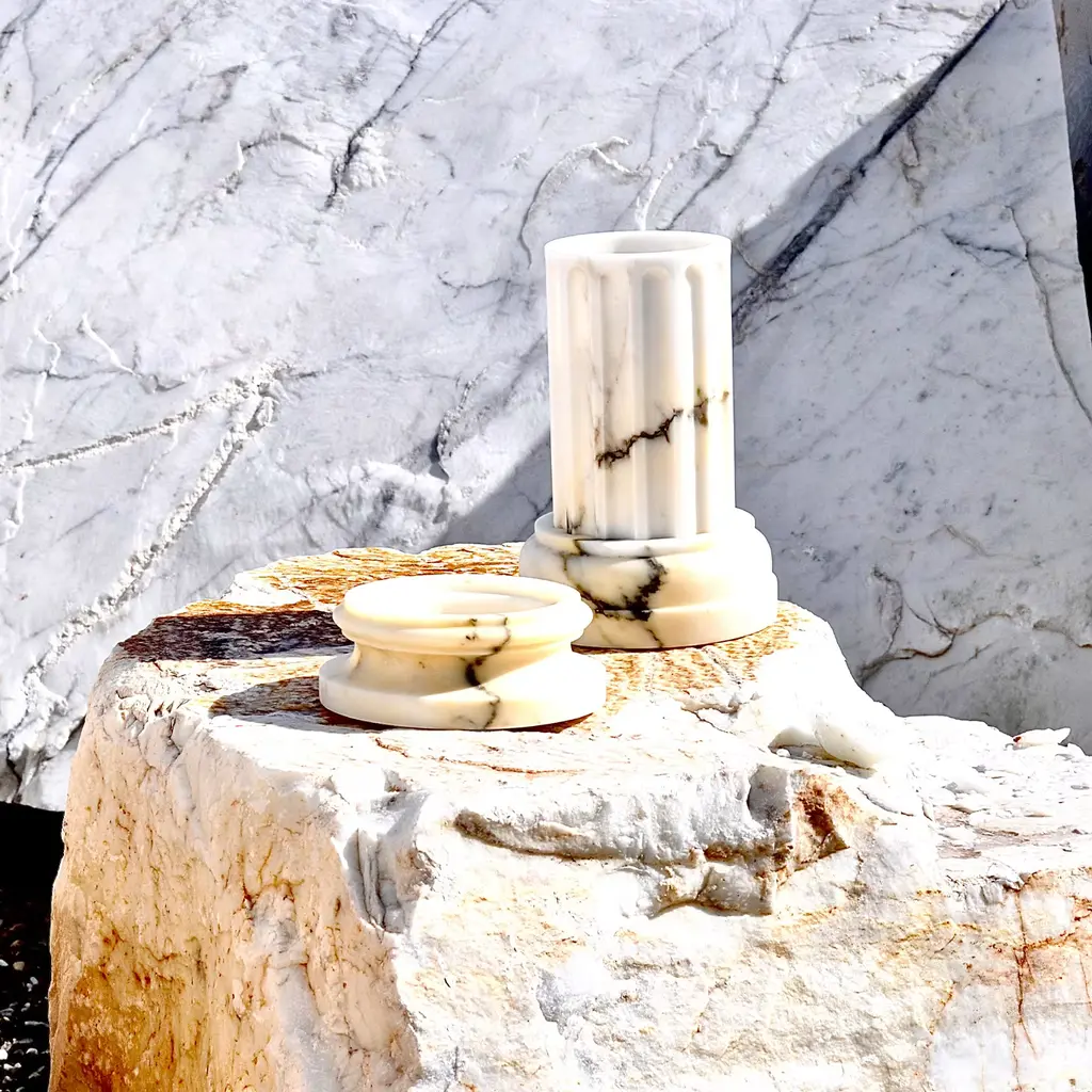 TE is the top section of the decorative vase POR TAN TE, contributing to its overall modular design. This part can be used independently as an elegant decorative element or combined with the other two parts to complete the full vase. Designed in collaboration with SuonareStella, this vase is crafted from Paonazzo marble, a material that imparts natural elegance, with each piece being unique due to its distinctive veining.