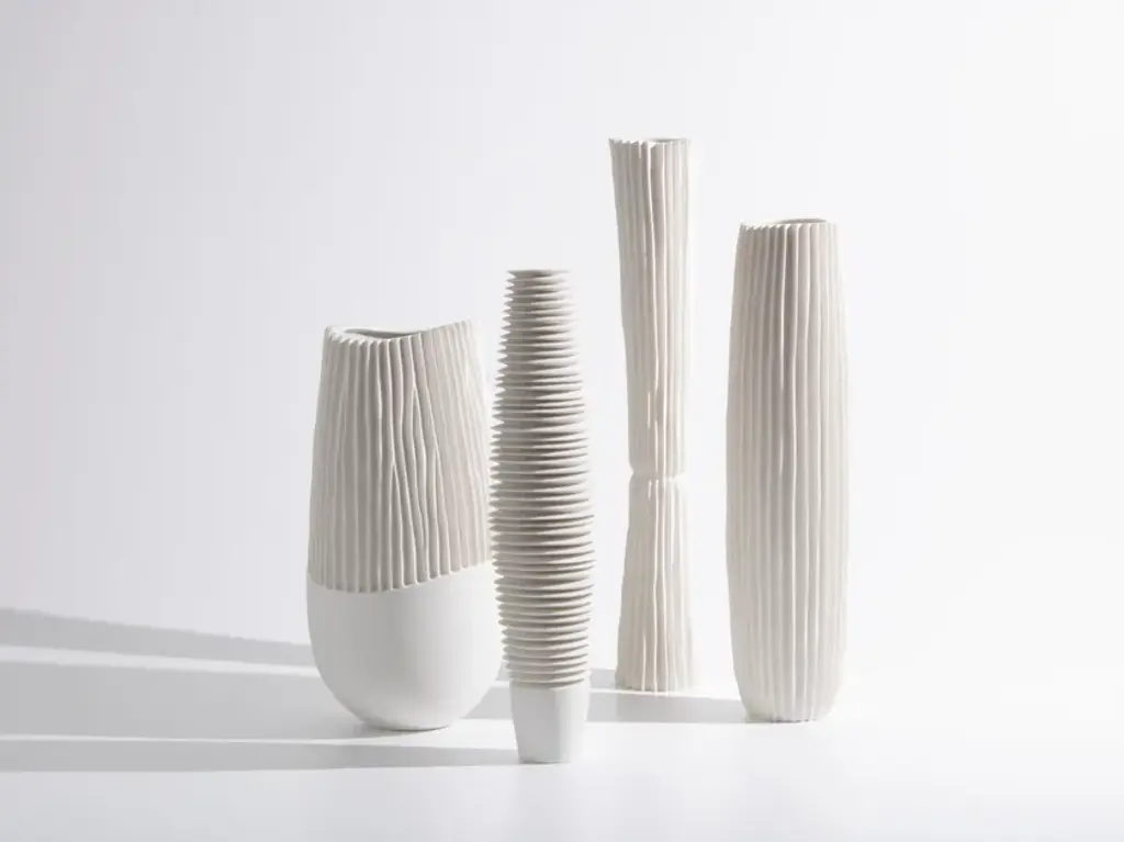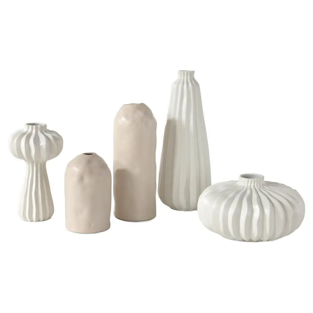 Tegan Vase,Set of 2 L:)7 x 7 x 26.5"Ht., S:)6 x 6 x 21"Ht.,Ceramic Gesso White Mat Glaze Ceramic Finish