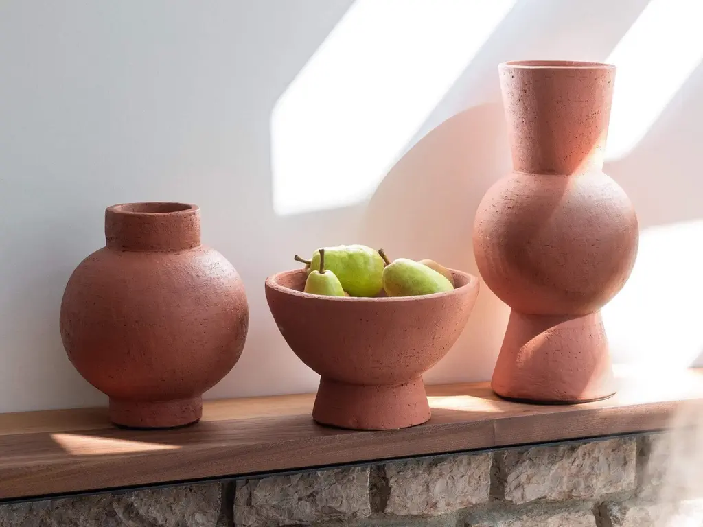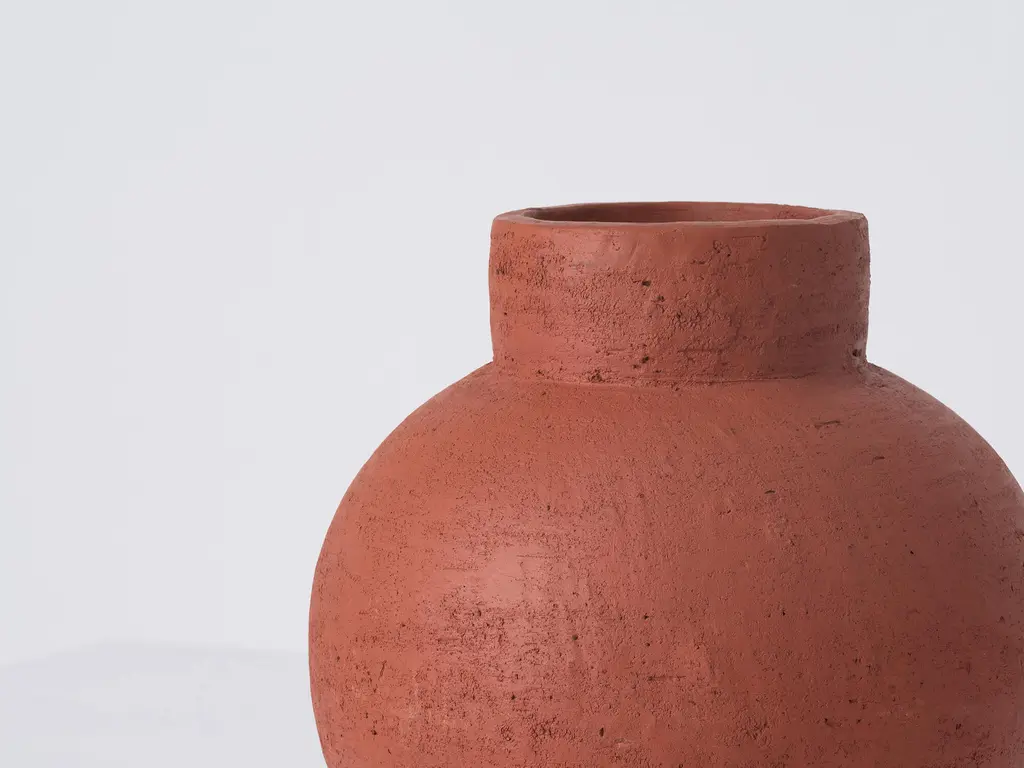 Handmade and hand-dyed by Indonesian artisans, the rustic Terracotta round vase features a natural terra-cotta finish and texture. Use it on its own or combine it with the Terracotta tall vase and display bowl.