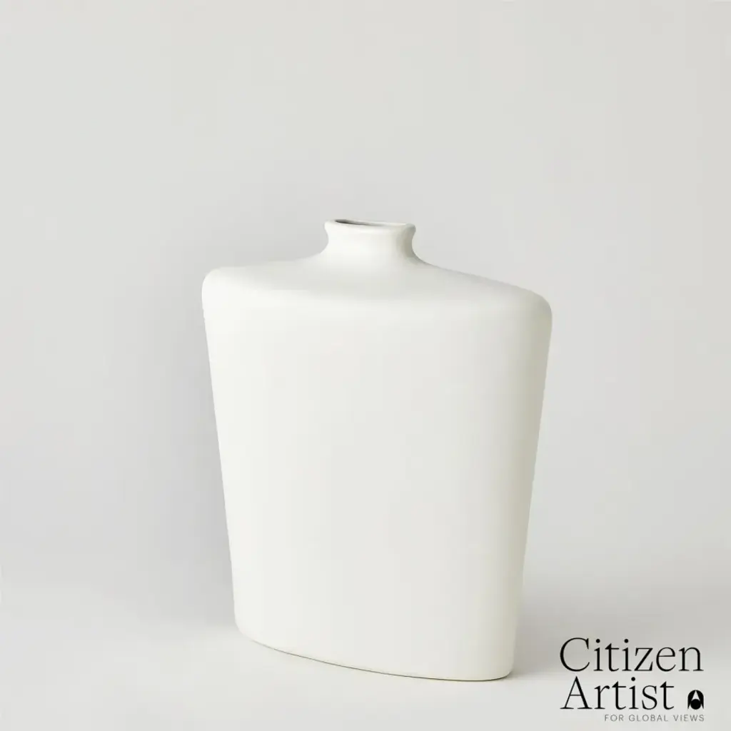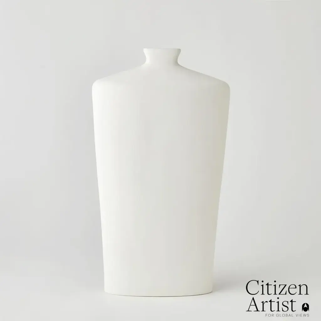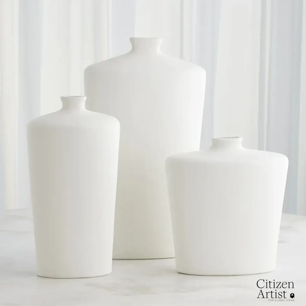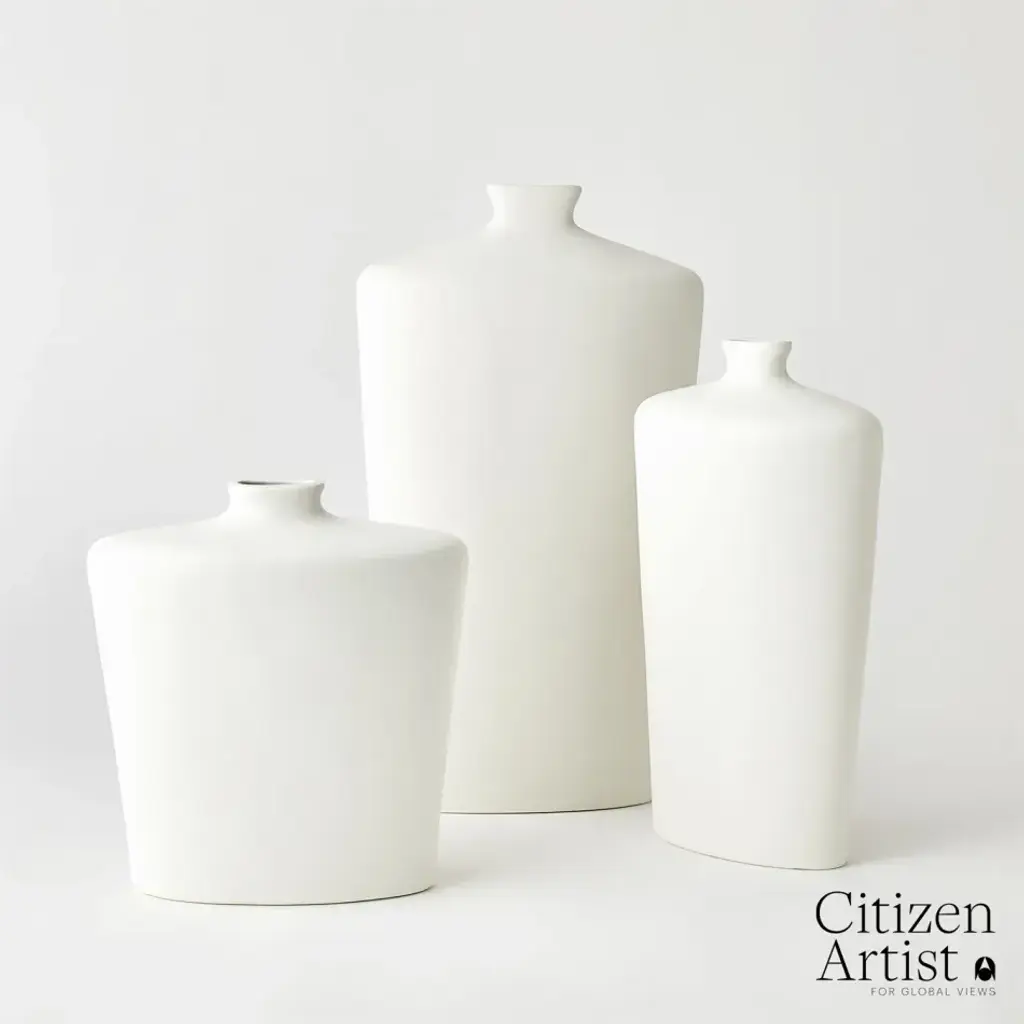 While the Terzo Vases exemplify the rule of three--that a trio makes a satisfying grouping--these simple forms are sublimely elegant alone or grouped. Handcrafted from Italian slip-molded ceramic with a classic matte white finish. From a fashion forward perspective, Global Views offers accessories, furniture, statement lighting, and an assortment of rugs and mirrors to add beauty and joy to your home.