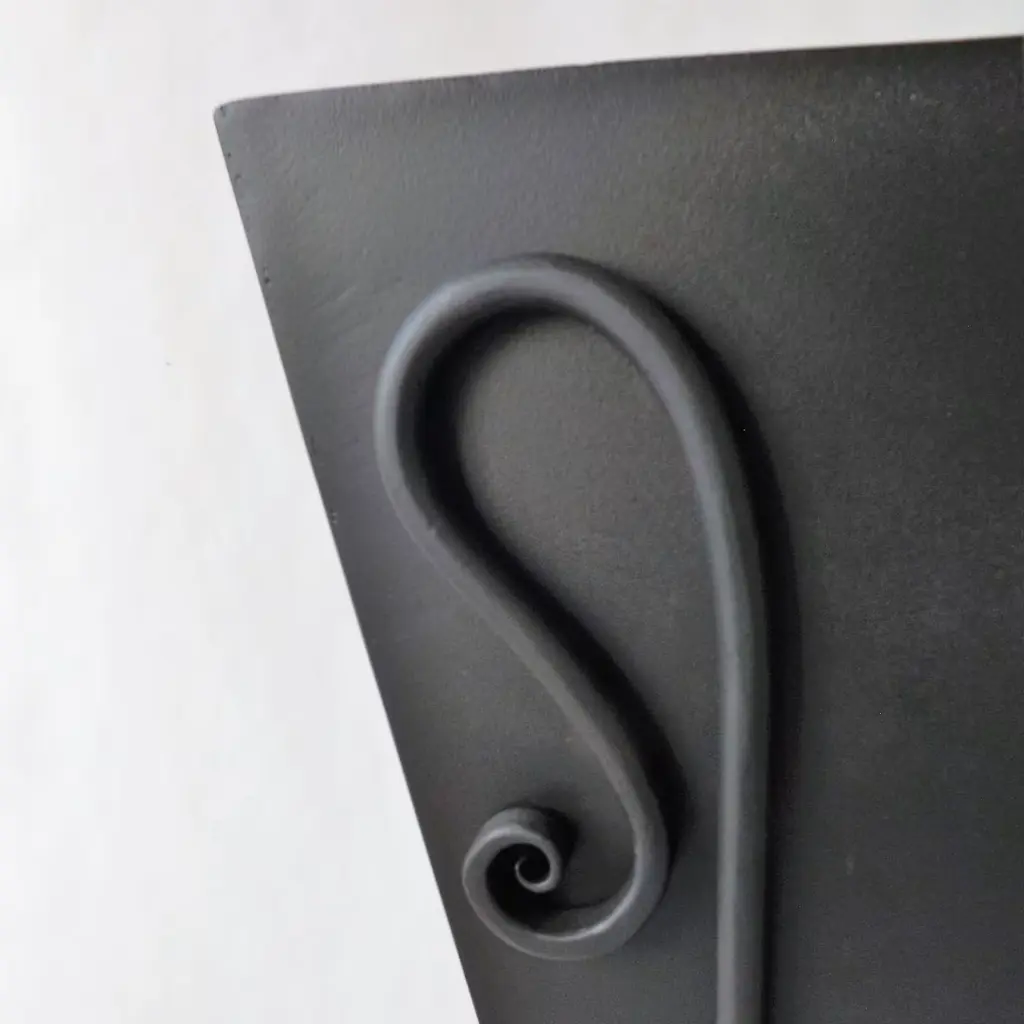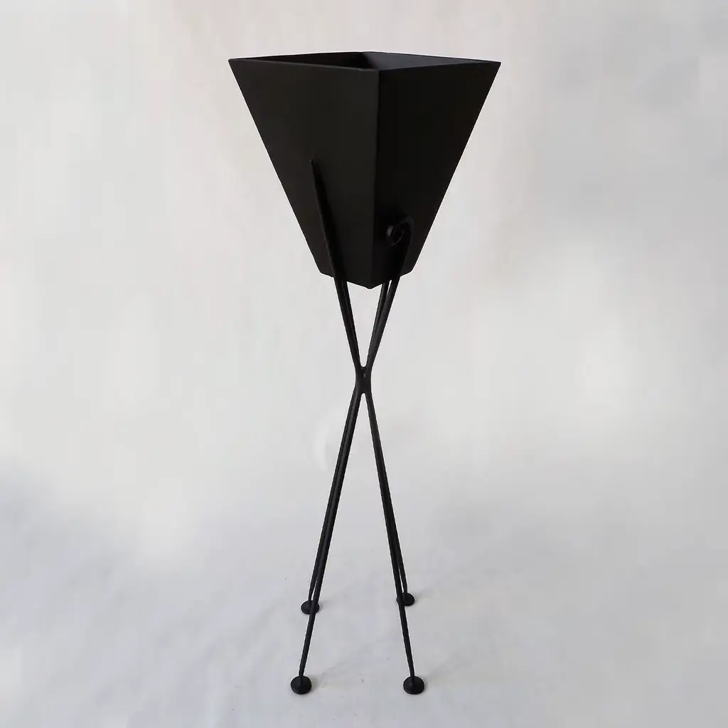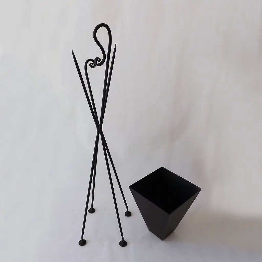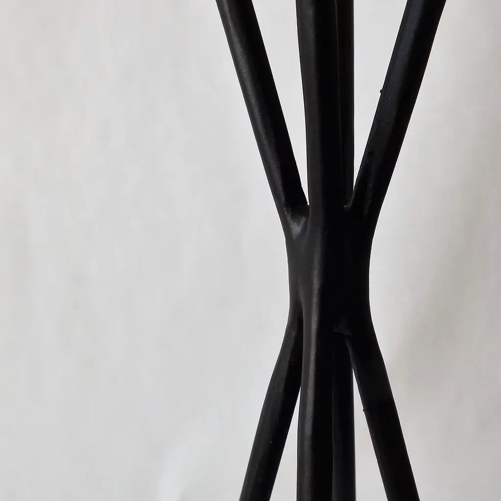 Designed in collaboration with Sardinian architect Roberto Virdis, this black metal pedestal with a vase showcases minimalist elegance. Standing at 82 cm, its matte black lacquered finish and sleek form create a refined visual impact. The dynamic, interlaced leg design adds modern character and stability. Ideal for displaying flowers or decorative accents, this piece infuses spaces with contemporary sophistication, blending artistic collaboration and functional style.