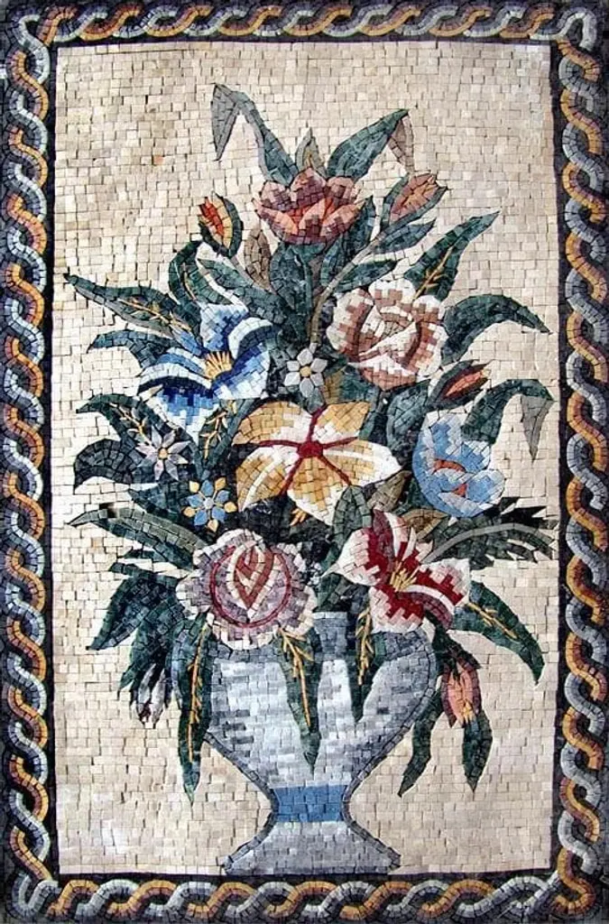 The Framed Floral Vase Mosaic- - 70cm X 110cm (28" X 43") / With Frame
