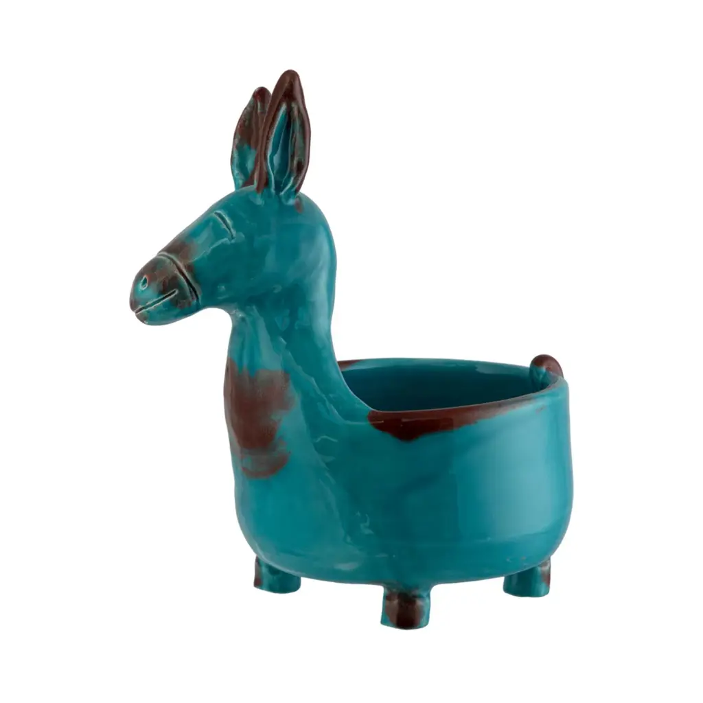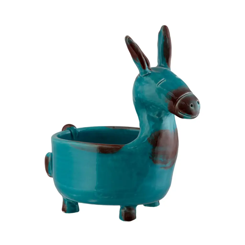 The charming Little Donkey, fashioned from hand-worked clay and fired in a second round with vibrant colored crystals, embodies versatility. This figurative vase serves multiple purposes as a plant or object holder and occasionally doubles as a whimsical fruit carrier. Whether displaying plants, organizing objects, or adding a playful touch while transporting fruits, this piece combines functionality with artistic allure, becoming a delightful addition to various settings.