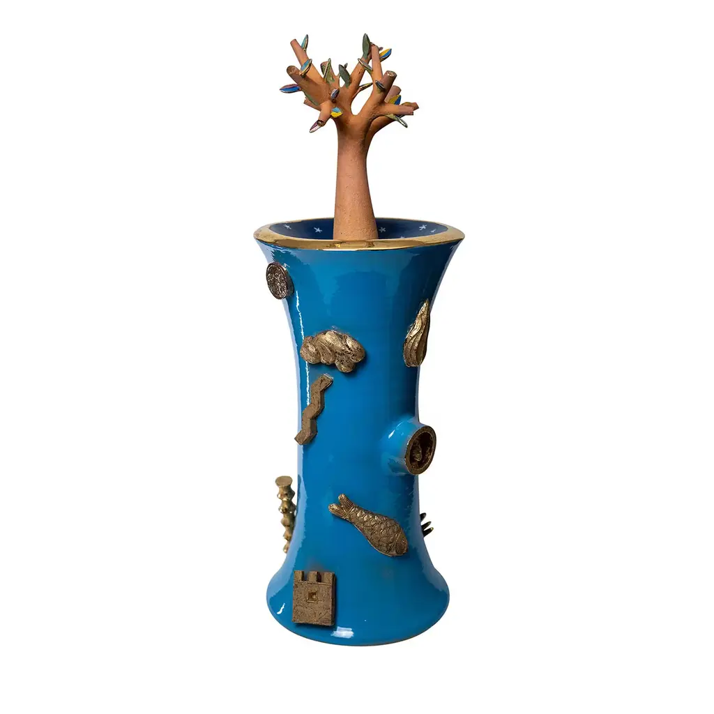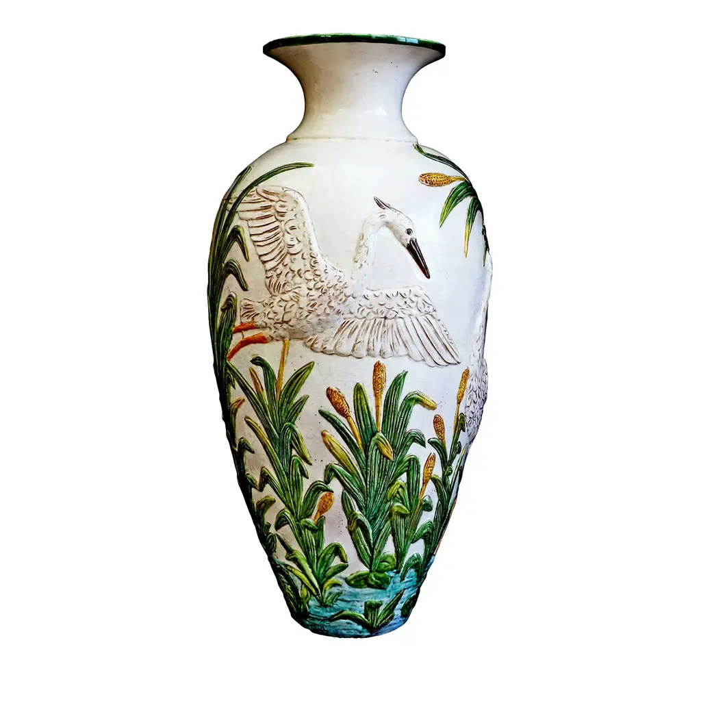 Portugal's most beloved cartoonist of the 19th century, Bordallo Pinheiro was famous for creating the character "Ze Povinho," a rustic laborer who was kind to his friends and contemptuous of those with money and power. His artistic style blends the honesty realism of late 19th-century Arts and Crafts movement with the dramatic, even grotesque, features of Goya's earlier paintings. In 1884, he and his son founded an eponymous factory in Caldas da Rainha along the Portuguese coast to create whimsical and naturalistic faience pieces based on his art. Because of the special minerals in the local soil and the skills of the craftsmen in the area, Caldas da Rainha is well-known as the capital of Portuguese pottery. Today the factory takes Pinheiro's original style into the 21st century with satirical portraits of modern day celebrities, while continuing its old fashioned, made by hand tradition of Portuguese pottery making.