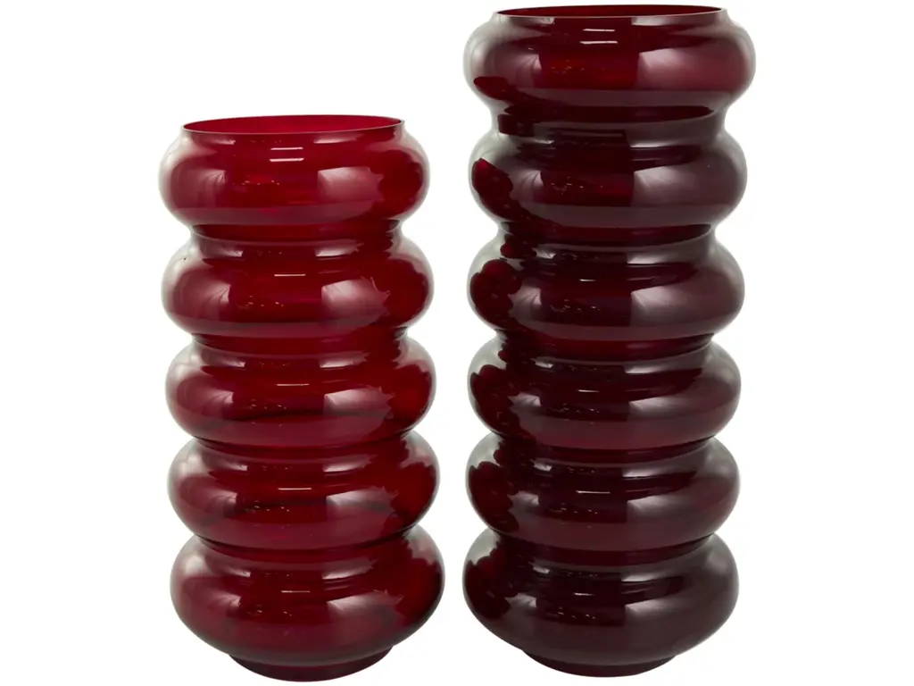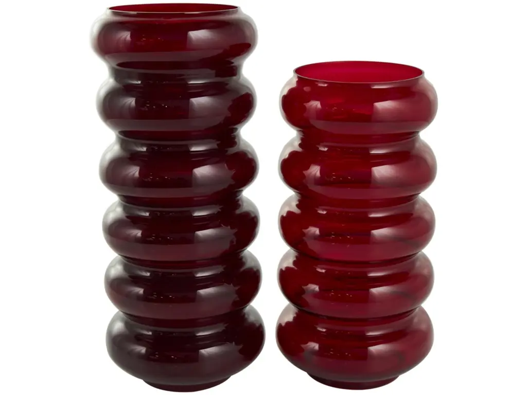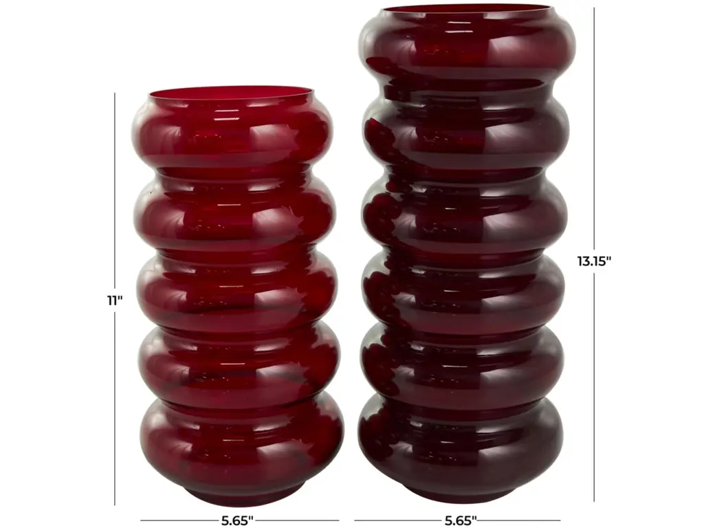 Style these vases as a pair on a sideboard or scatter them across a dining table for a captivating and eye-catching centerpiece. Designed with felt or rubber stoppers at the base that prevent scratching furniture and table tops, as well as sliding around. This item ships in 1 carton. Glass vase makes a great gift for any occasion. Suitable for indoor use only. This item ships fully assembled in one piece. Made in India. This red colored glass vase comes as a set of 2. Eclectic style. Vases have 4.20 in, and 4.20 in mouth openings.