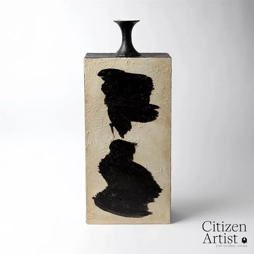 Inspired by the pottery of Pompei, each handmade ceramic vase in this trio is as dramatic alone as they are together. Finished with unique motifs, painted by the principal designers of FORM Design Studio, these pieces are artisanally realized in Italy by two brothers in their studio. From a fashion forward perspective, Global Views offers accessories, furniture, statement lighting, and an assortment of rugs and mirrors to add beauty and joy to your home.