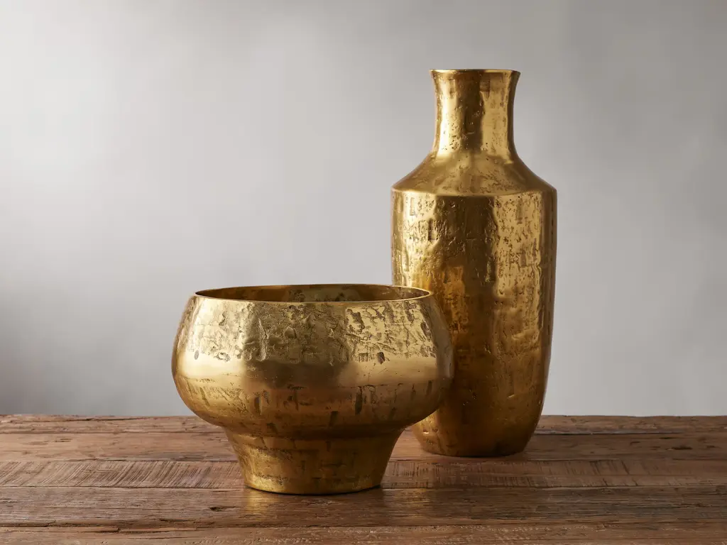 Create a stunning décor display with our Thira Vase. Hand-casted in India from solid brass, this vase pairs perfectly with other Thira Collection items and features an elegant, tapered neck that will make a beautiful addition to any home. Crafted in India from solid brass.