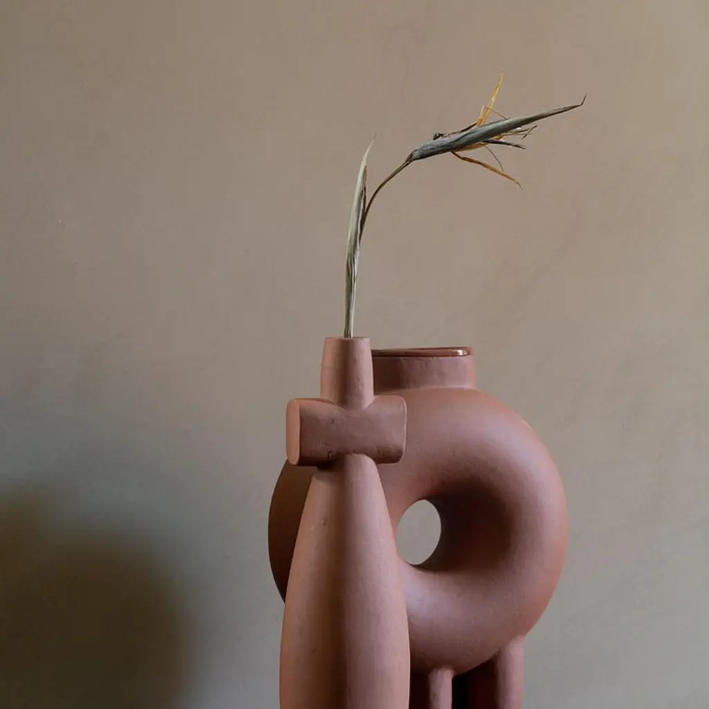 Three leg ceramic vase by FainaDesign: Victoriya YakushaMaterials: Ceramic.Dimensions: L 31 x W 14 x H 39 cmIn search of new-old design messages, Victoria Yakusha conducted a study of the daily traditions of our ancestors. The times of Trypillia and the Scythian civilization, Slavs household habits, designer studied the forms, materials and craft techniques of those times and brought modern perusal to the traditional things.Awards Industart 2015 Award for PECHYVO cabinetArchiproducts Awards — SHCHEDRYY table nominatedAZ Awards Canada nominated SOLOD cabinet The Interior of the Year Award for ZTISTA chairExhibitions Solo2017Stockholm Furniture Fair: The collection had an individual Stand2018Milan Design Week: presented novelties at Superdesign Show 2018London Design Fair: has presented full collection.Group2015Bologna Design Week: first exhibition for the new Collection.2017Dutch Design Week: SOLOD ?abinet, HRYB coffee-table — participants of the exhibition.2018Paris Design Week: Bandura vase in the "1000 vases" Project by Roberto Bachiocci2019Stockholm Design Week: presented at the two TOP locations — "Fenix Palace" & "Temperament" exhibition by Sahara Widoff.2019Milan Design Week: KOROTUN table, BANDURA & MOTANKA vases featured in Studiopepe installation "Les Arcanistes — Future Un / written".
