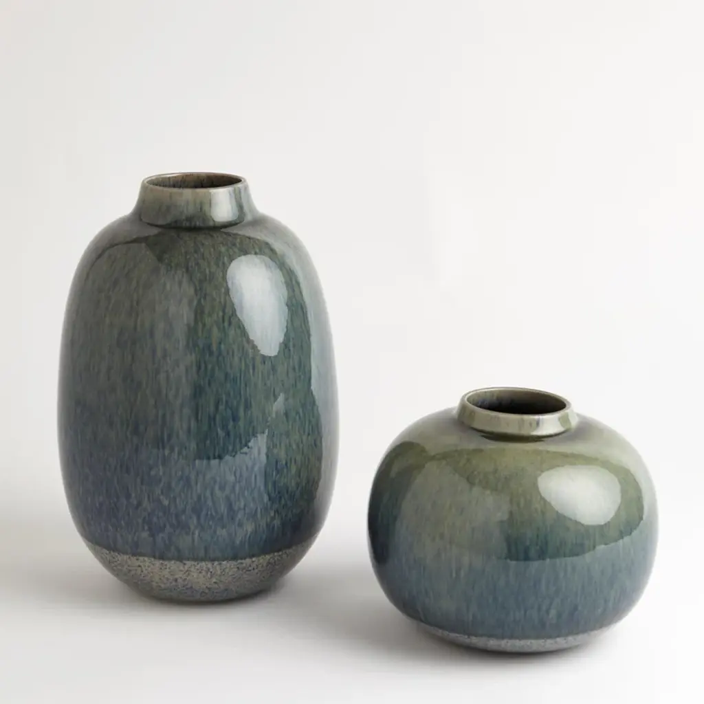 Made of Portuguese slip-cast ceramic, the cream-rises dented vase has a concaved design with ivory and gray reactive glaze finishes.