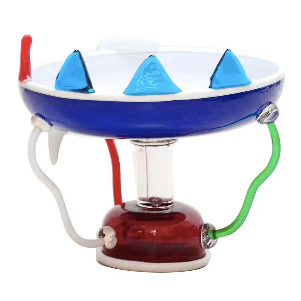The "Tigris" porcelain vase, comprised of stacked, spouted and coiled forms covered in powder blue, white and black glazes, Memphis Milano collection. The Tigris Vase was originally designed in 1983 by Ettore Sottsass. Ettore Sottsass was born in Innsbruck in 1917. In 1939, he graduated in architecture at the Politecnico di Torino. Ettore Sottsass is one of the most influential and important figures of the last century for architecture and design. He has participated in all radical movements whether created from the 1970s and 1980s. In 1981 he founded the Memphis Group, a group that has radically changed the scenario of Italian and world design. Honored with numerous international awards, he was the winner of the Golden Compass in 1959. Sottsass also designed the first laptop "Valentina" by Olivetti. In 2007 Ettore Sottsass died at the age of 90 years, however Memphis Milano continues and is the representation or Sottsass's great work and memory.Memphis is the great cultural phenomenon of the 1980s that revolutionized creative and commercial logics in design. Born from the idea of Ettore Sottsass and a group of young designers and architects, in Milan, coupled in the years by famous designers from the international scene, Memphis turned upside down all of the existing parameters on living. Ettore Sottsass as the backbone of the group, design gained a new concept and expression through new shapes, materials and patterns, expanding the creative limits of the industry. Memphis became a symbol of new design. Its influence is still clear in various sectors of production and beyond.Additional info:- Dimensions: Diameter 7.5, height 15.5 inches- Material: Porcelain- Pricing: Prices do not include VAT.- Purchased products are shipped with forms of authenticity by Memphis Milano. Ceramic and Porcelain items as well, contain a decal which shows the signature of the designer, and the year which the product was originally designed in.
