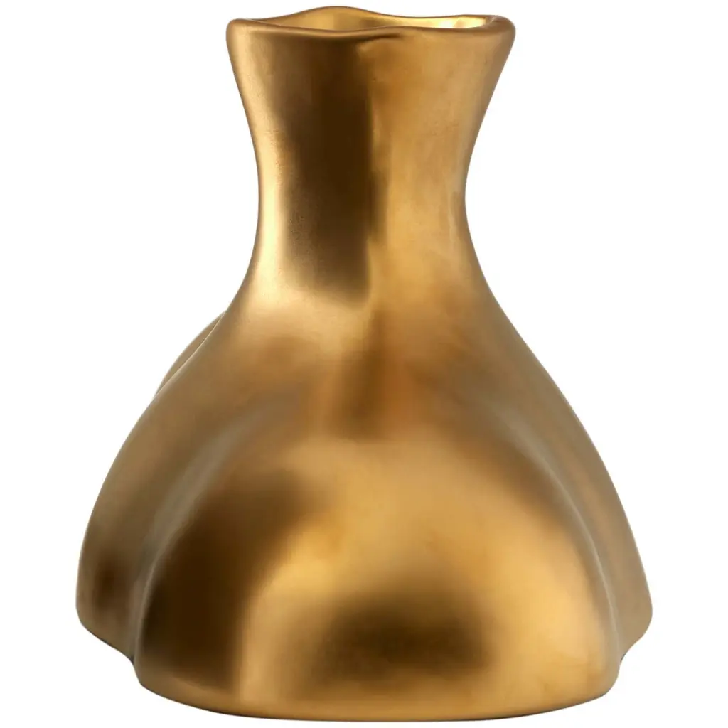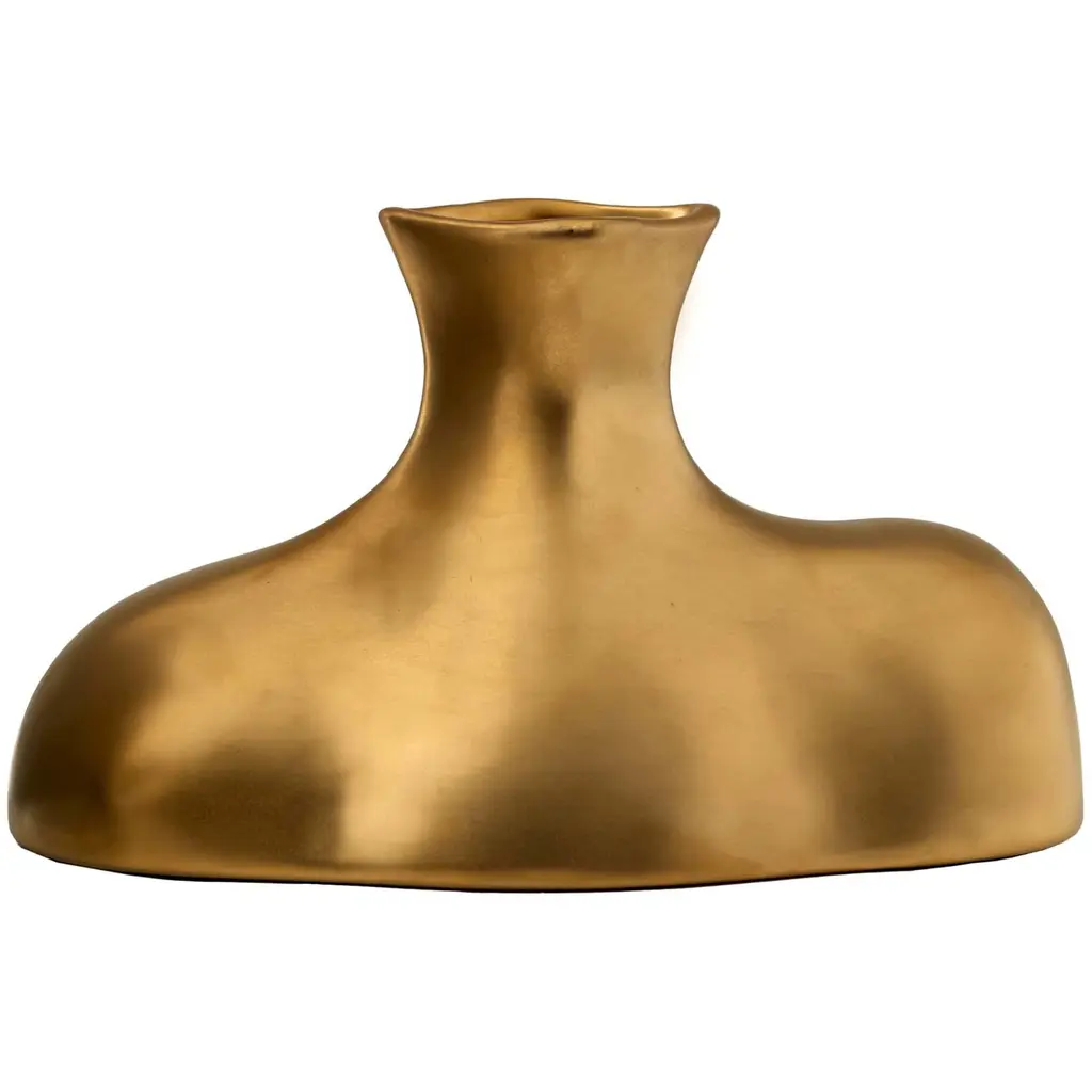 The tilbury dares to be bold. The vase is rendered in an expressive decolletage form in the gold ceramic. Use the watertight accent to hold a favorite bloom, or as an evocative tabletop accessory.