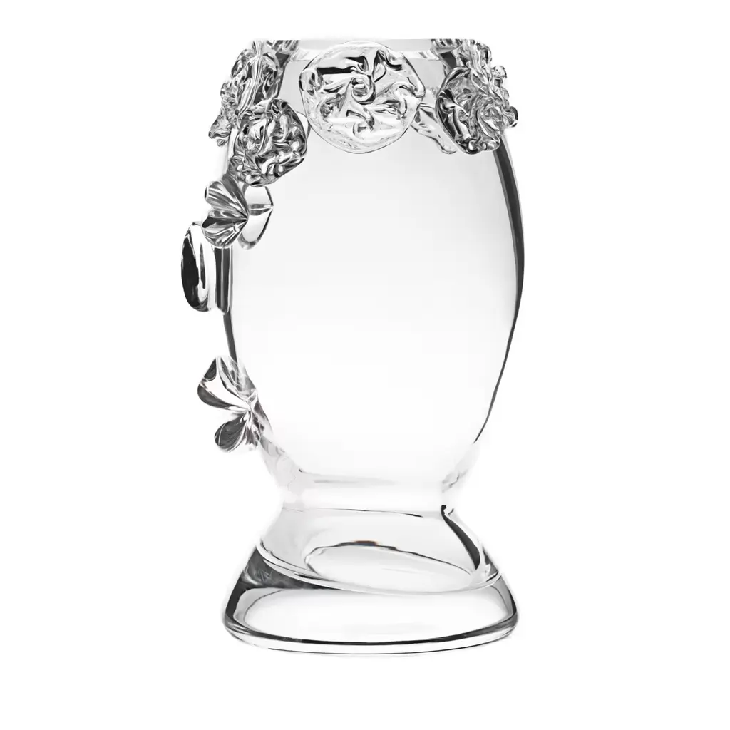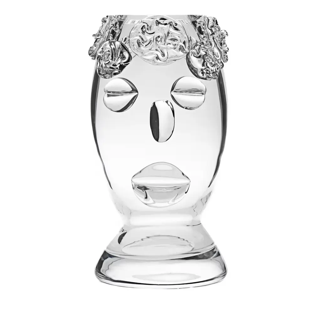 An original design by Candida Menci depicting a lovely and fun face engraved and applied to the flawless crystal of the Tuscan workshop ColleVilca. The vase is playful and of brilliant transparency.