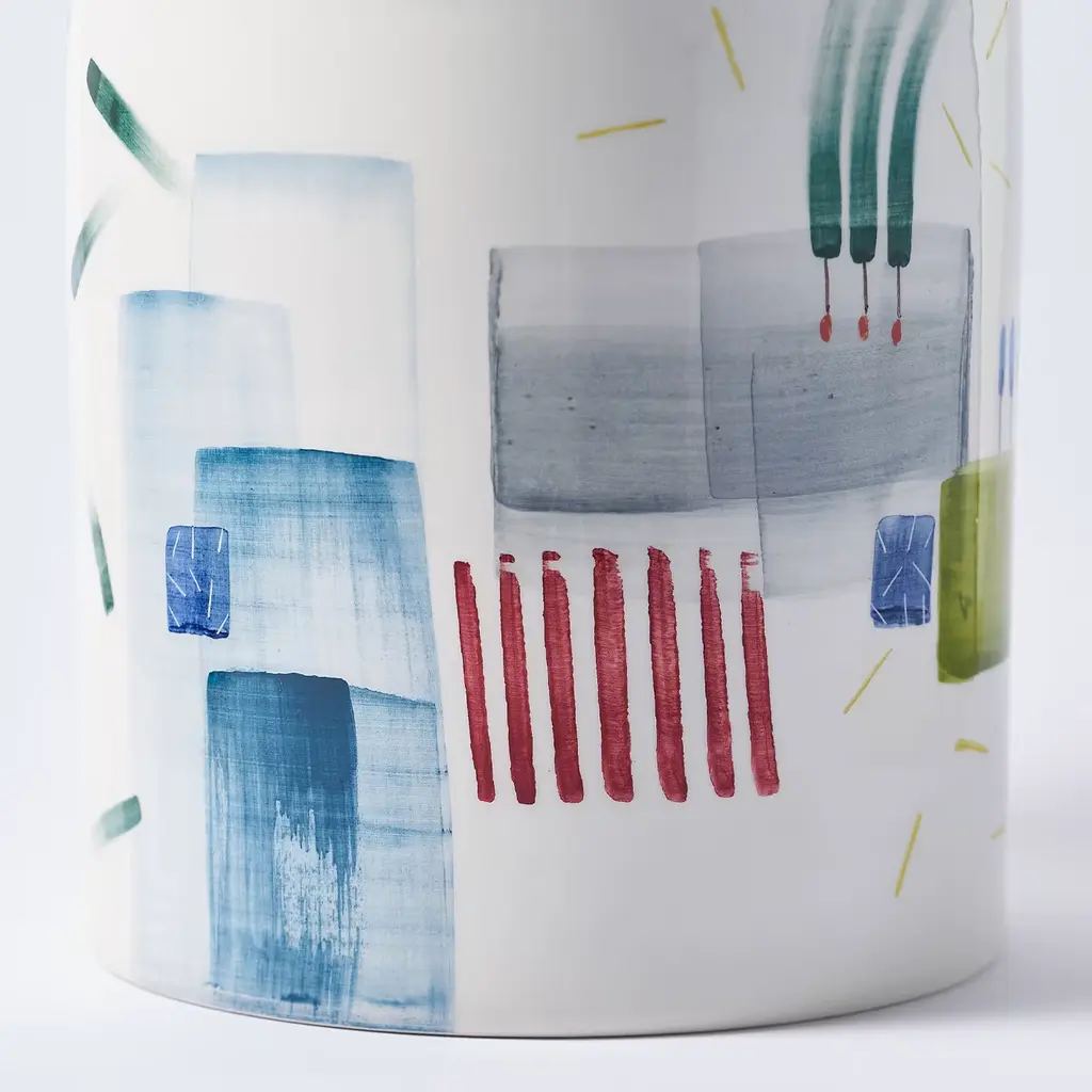 Tipota roller vase is the first vase entirely designed by ZeNA, from its shape to its drawings. It belongs to the “Divertissement” series, a collection full of colors, shapes, and pictograms inspired by islands of sea and land that run across the surface. Each piece is unique and entirely handmade painted, the design may slightly vary. Please, contact the Concierge for further information and options.