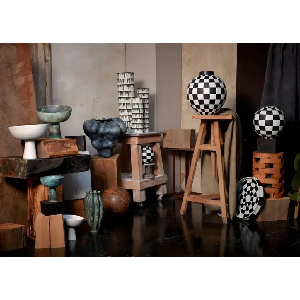 A handmade collection of vessels inspired by the Japanese technique of indigo dyeing. Each hand-crafted piece is raked with grooves that allow the inky drops to flow. The unique pattern on the porcelain makes each piece one of a kind. Prior to founding L’Objet in 2004, Israeli-born Elad Yifrach was a successful designer in Beverly Hills. He was creating beautiful interiors, but he was frustrated by the limited options available in home accessories, so he set out to create something better. L’Objet’s collections are diverse, but they are almost always inspired by nature and architecture. Many of his exquisite serving pieces rest in a base of hand-crafted gold foliage, other pieces feature intricate design and beadwork, and some of the most striking objects actually look like miniature buildings. And despite the lux feel, much of the line is practical with just a touch of whimsy.