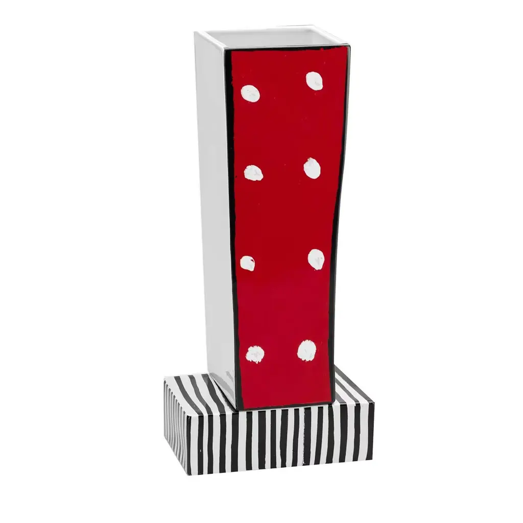 A ceramic vase characterized by a unique motif that's different on the two sides. It was completely designed by Roger Selden and hand-painted with extreme care. It is 39cm tall, 18cm large, and 12cm long, best placed in a simple environment so that it can express all its character. Flip Flop Collection.