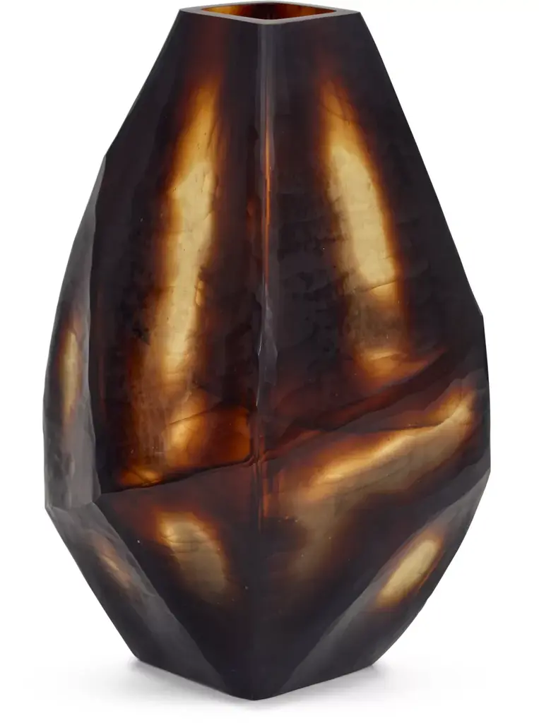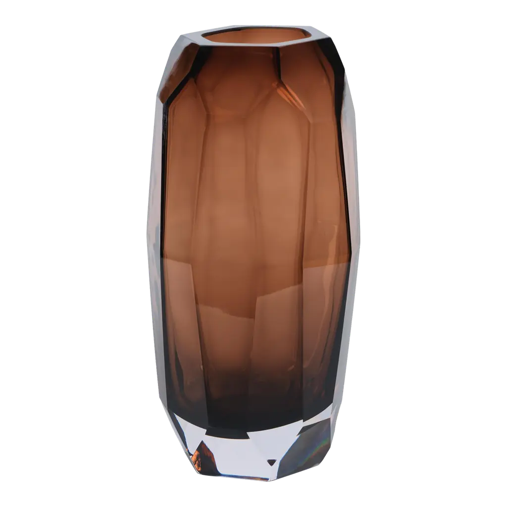 Discover the Topeka Vase, a handcrafted beauty available in two distinct sizes. Made from glass with rich, brown hues, each vase reflects a unique, faceted design. The smaller size offers a quaint charm at 10-inches tall, while the larger size makes a bolder statement at 12 inches. Opt for one to add a subtle accent or embrace both to elevate your space. Please select your size before adding to cart.