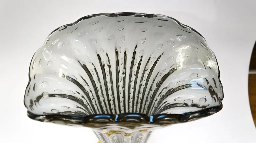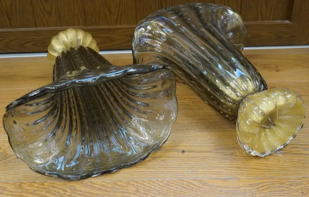 Toso Mid-Century Modern Grey Gold Two Of Murano Glass Vases Signed Jars, 1987