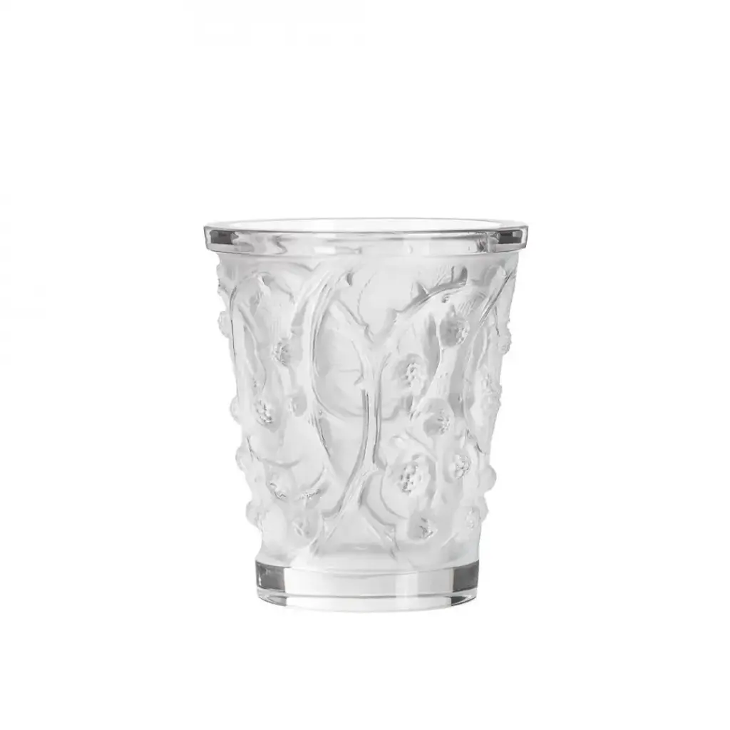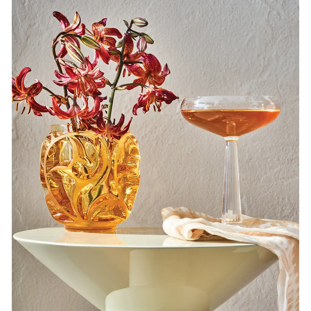 A gorgeous interpretation of Rene Lalique's original design, this vase is beautifully crafted from lustrous crystal and finished with an ornate scrolling motif.