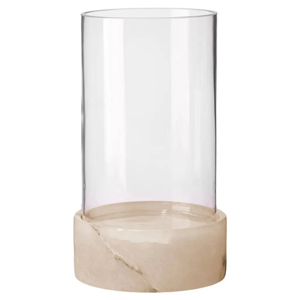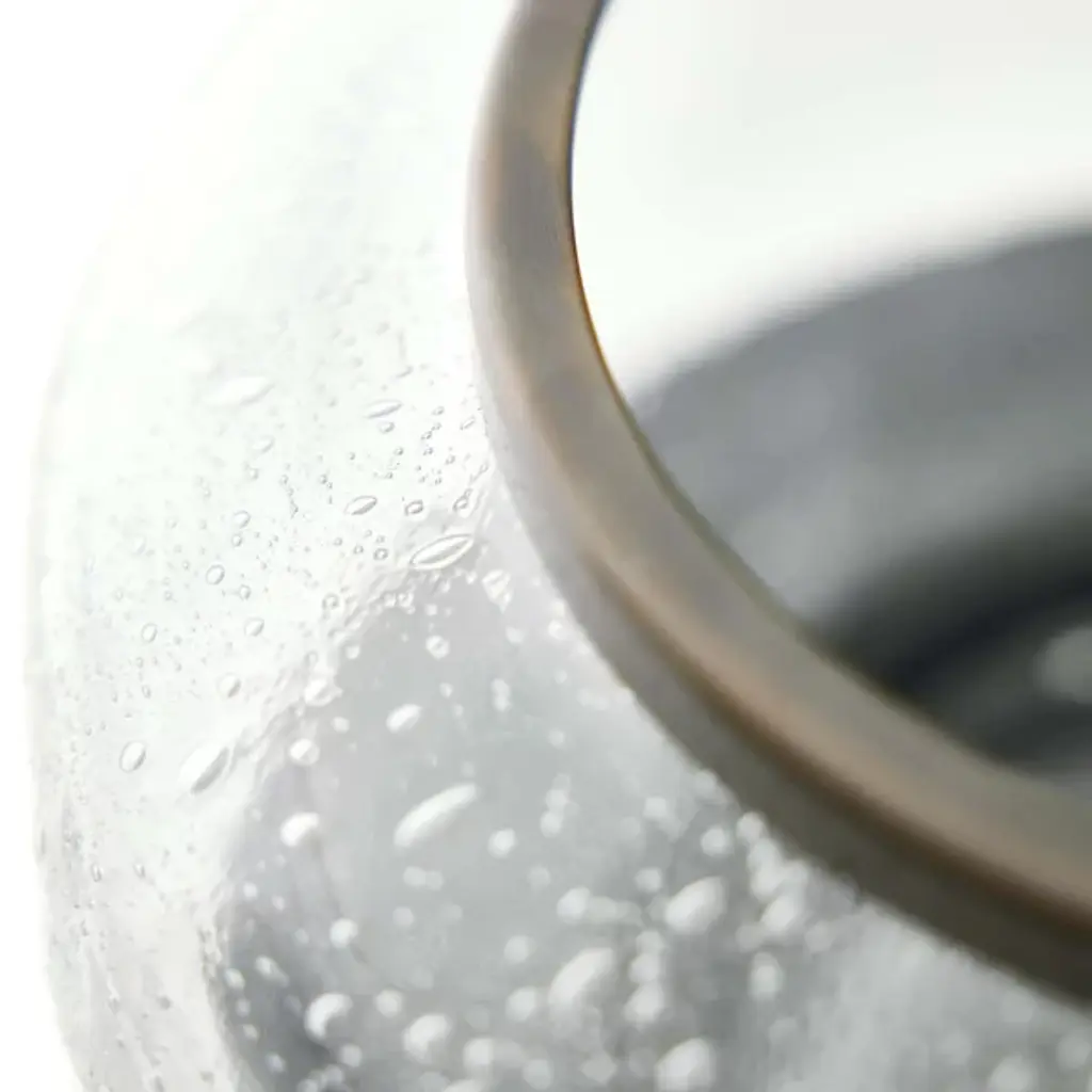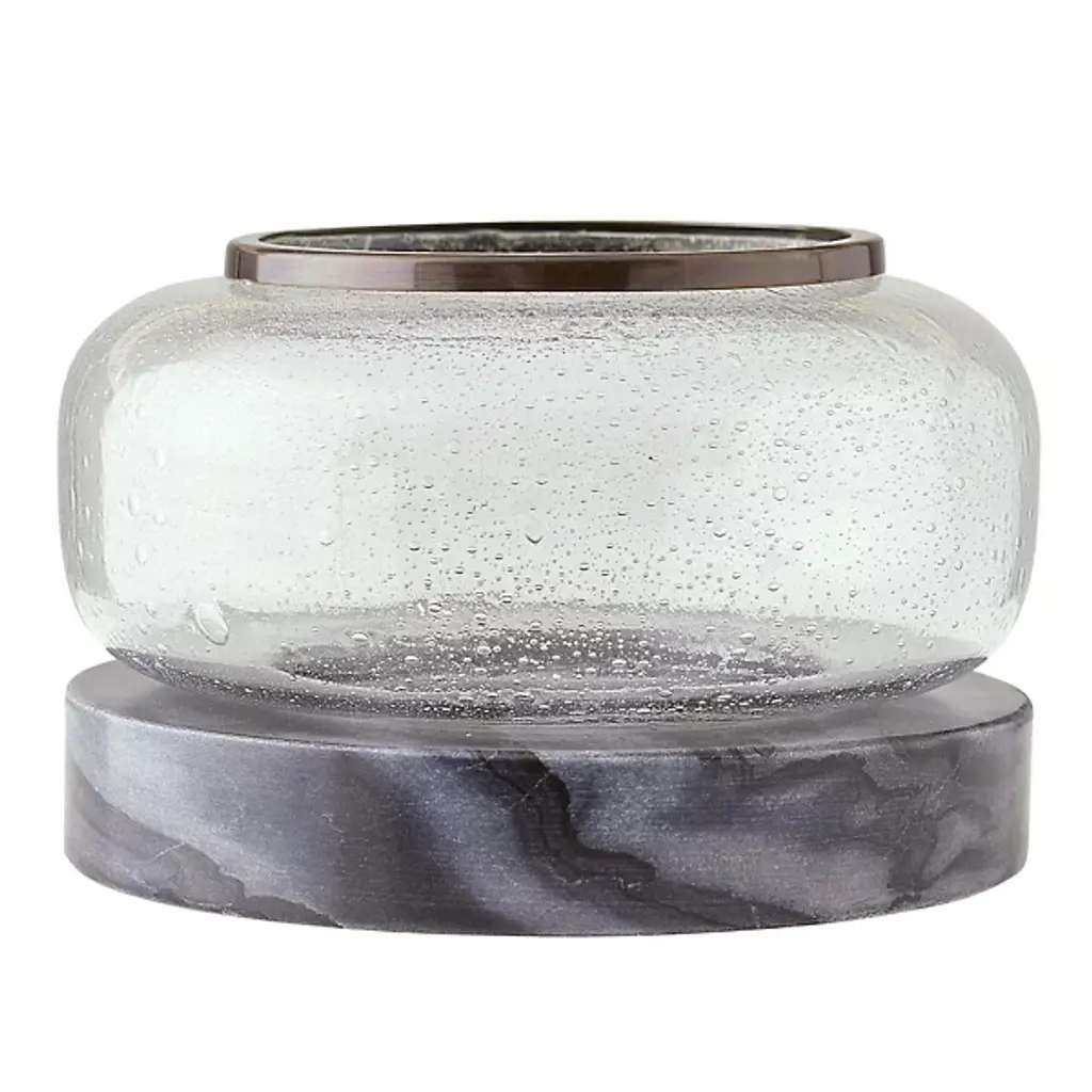 The Trace Vase from Arteriors brings a transitional aesthetic to your living space. A gorgeous marble base provides foundational support for Trace’s contoured frame of seedy glass. This vase boasts a distinctive mushroom shape which facilitates the containment of plants. A brass ring crowns the Trace Vase, accentuating its elegance. The Trace Vase’s watertight design makes it easy for you to care for your fauna so that your verdant display remains ever-vital.