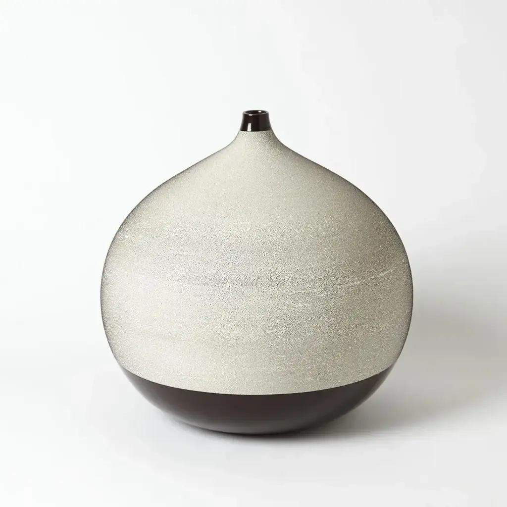 The Tranquil Glass Vase is a stylish accent piece that introduces gorgeous curves and a serene color palette that facilitate a peaceful atmosphere within an interior space. Crafted from mouth-blown art glass, the vase showcases an opaline shade of gray accented by a stunning white streak across the body.