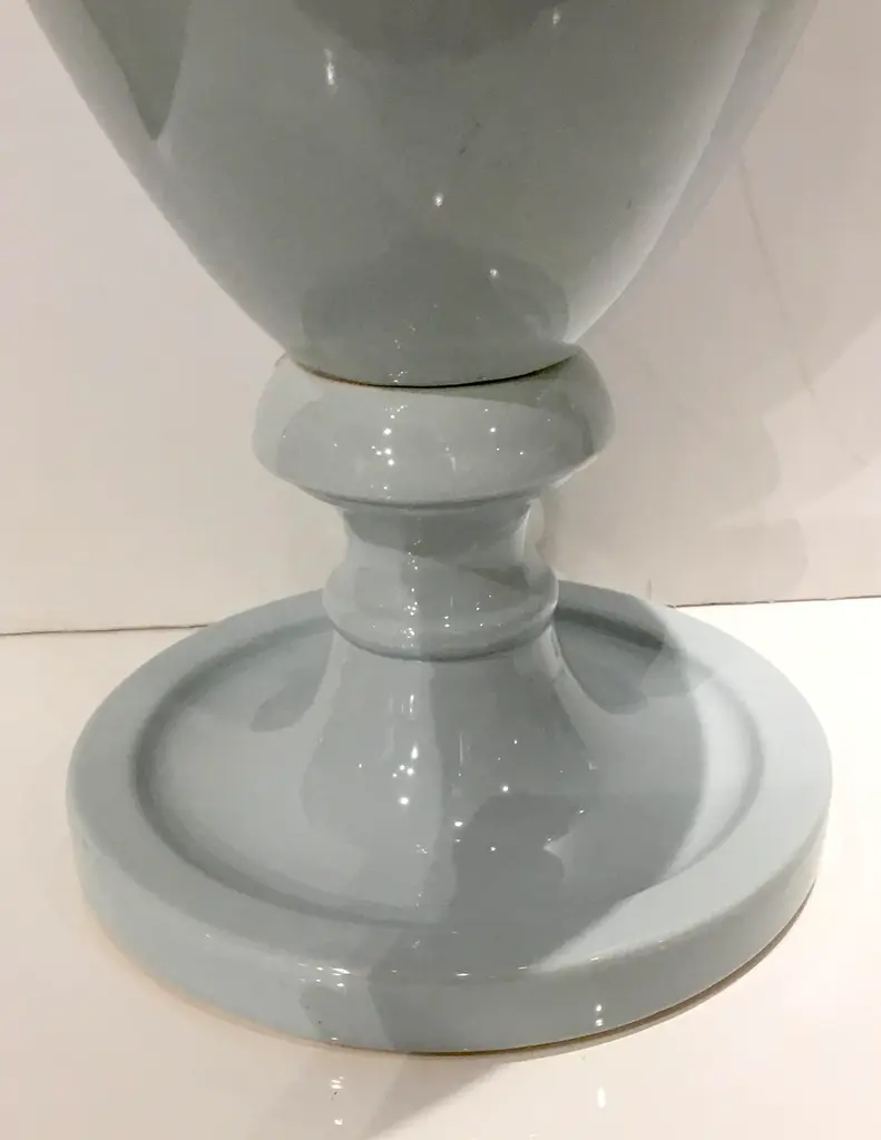 Transitional Grand Chalk Blue Glaze Ceramic Urn With Lid