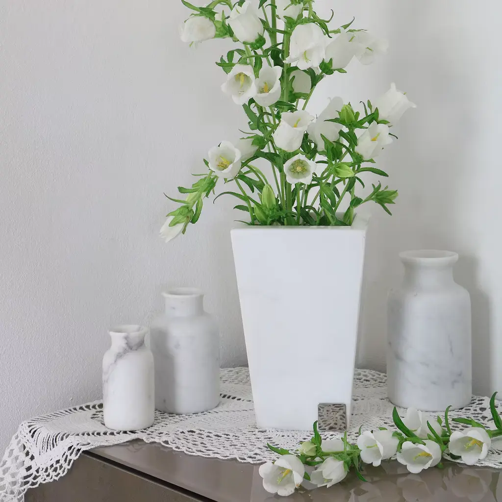 Trapezio Vase In White Carrara Marble
