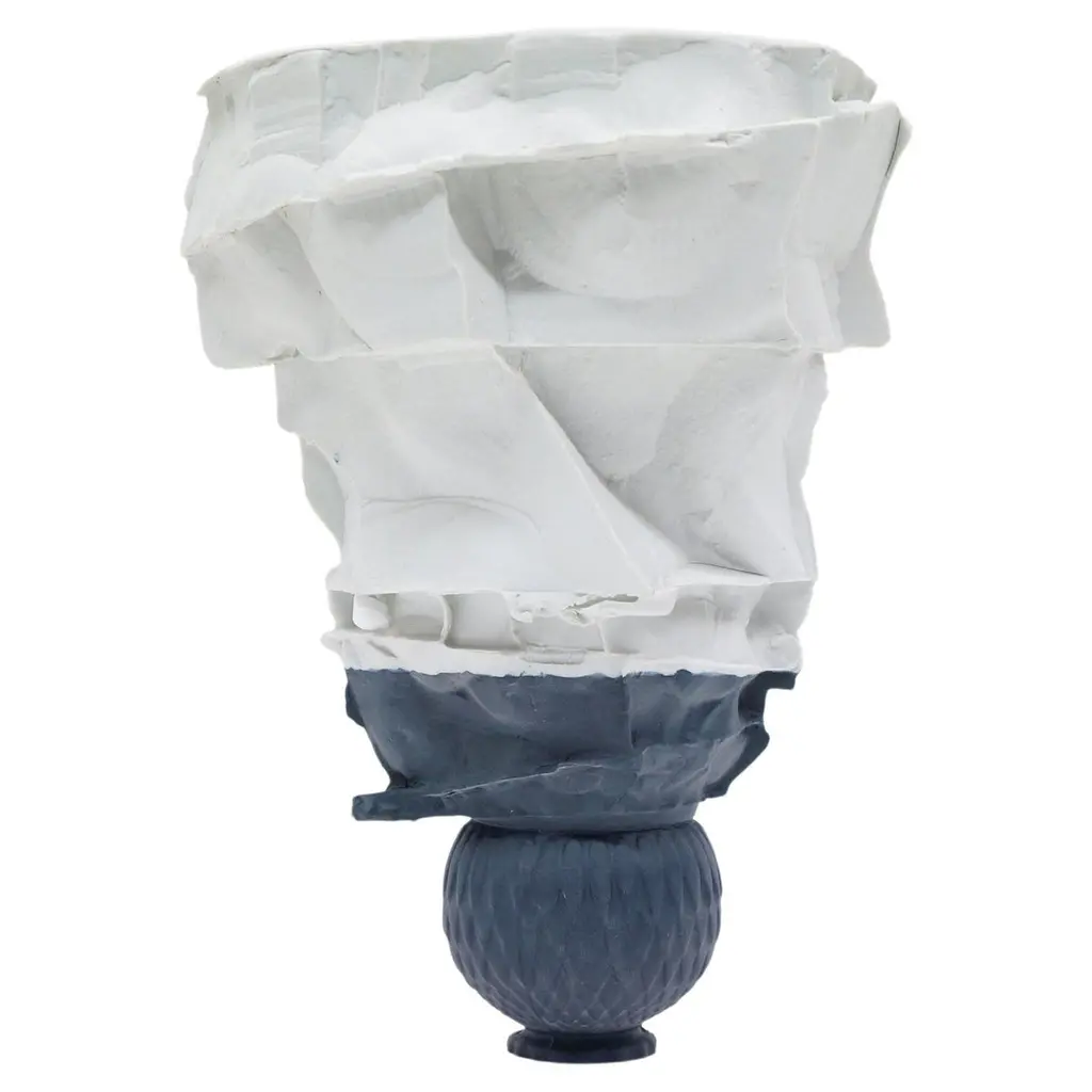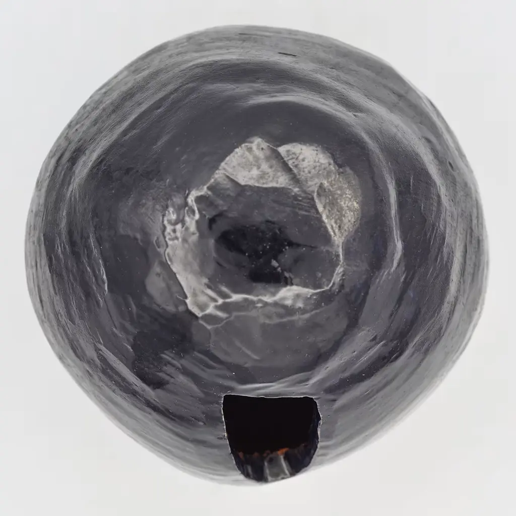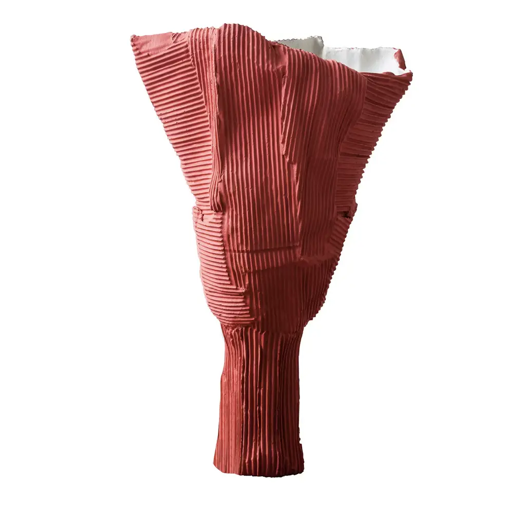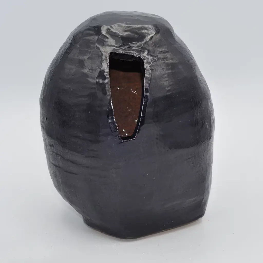 Inspired by the changing and compelling shapes found in Nature, this magnificent vase is a deft showcase of craftsmanship by artist Maurizia Carantani, created in 1980. Fashioned of single-firing terracotta, its irregular shape opens in a trapezoidal mouth perfect for hosting a vibrant floral arrangement that will contrast with the polished black hue.