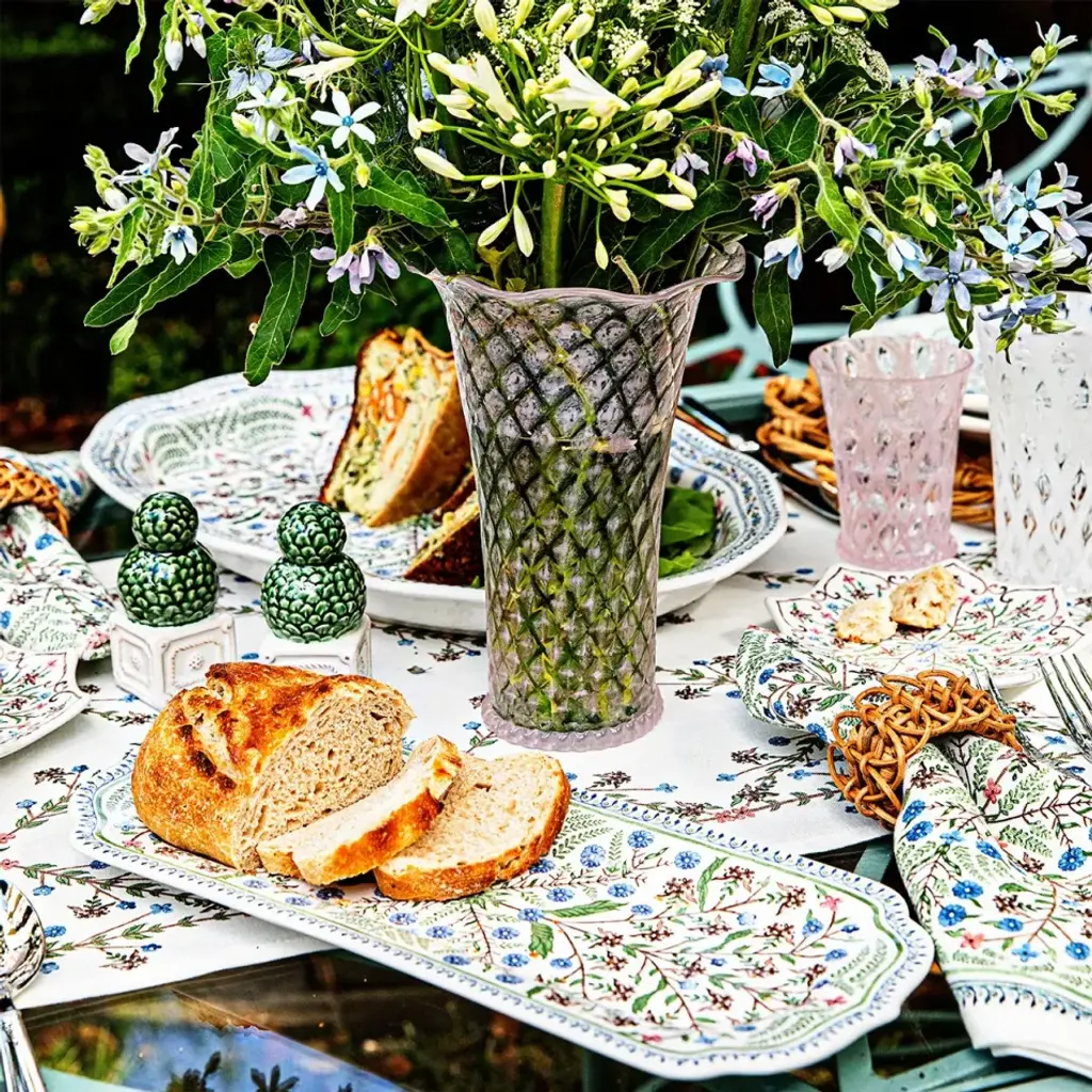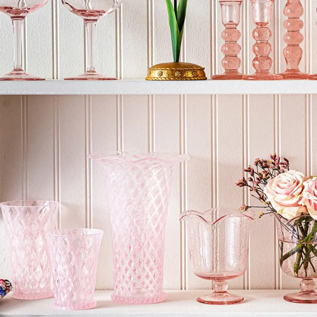 This undeniably romantic vase has a flared, feminine silhouette with a ruffled rim and our intricate, trellis motif in a blushing pink hue that sets off everything from formal floral arrangements to armfuls of garden flowers to utter perfection. Based in Connecticut, Juliska is committed to bringing elegant European design into our modern homes. Since its founding in 2001, when David and Capucine Gooding began by working with artisans outside of Prague to reproduce antique Bohemian glass pieces, every piece from Juliska has shared a rich heritage spanning six centuries of European design. Juliska's creations are timeless, romantic and effortlessly chic.