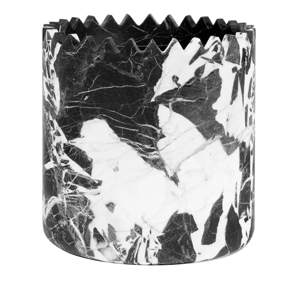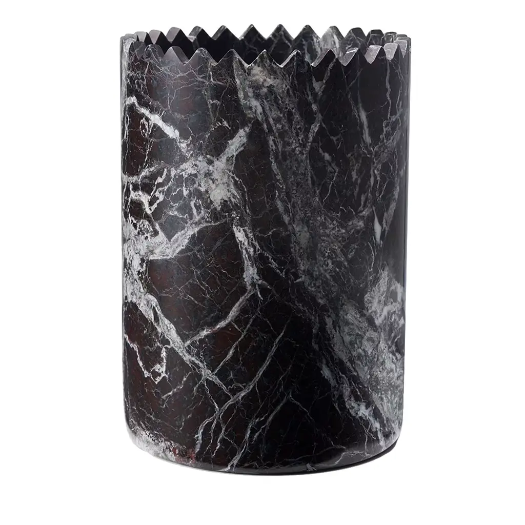 Designed by design-duo David/Nicholas exclusively for Editions Milano, this alluring vase embodies modern aesthetic harmony and traditional handcrafting techniques. The tall cylindrical vase boasts a jagged top, reminiscent of a crown, and an unmistakable surface texture of rare Grand Antique marble. Used to elegantly frame tall flower or candles, this piece will exude a mysterious yet inviting ambiance into any modern or traditional decor.
