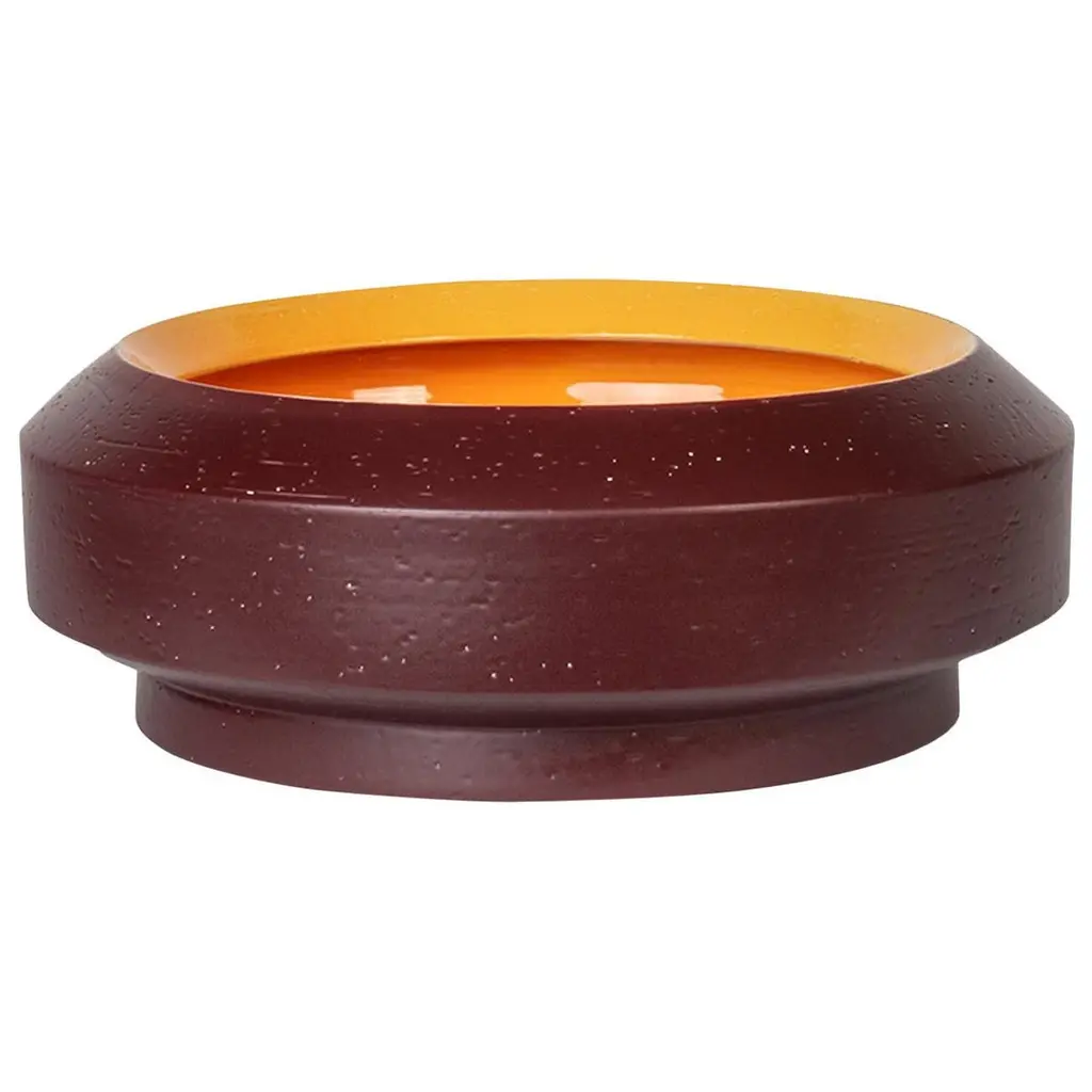Elegant and expressive, this stylized ceramic bowl-shaped vase flaunts a two-tone finish enriching its design with earthy tones, warm brown on the outside and yellow inside, the latter visible through the wide top opening. Perfect in a modern, neutral-toned interior where it will add a subtle pop of color, this low-profiled vase from the Tribe Collection by Arik Levy was displayed at the 2019 Milan Design Week.