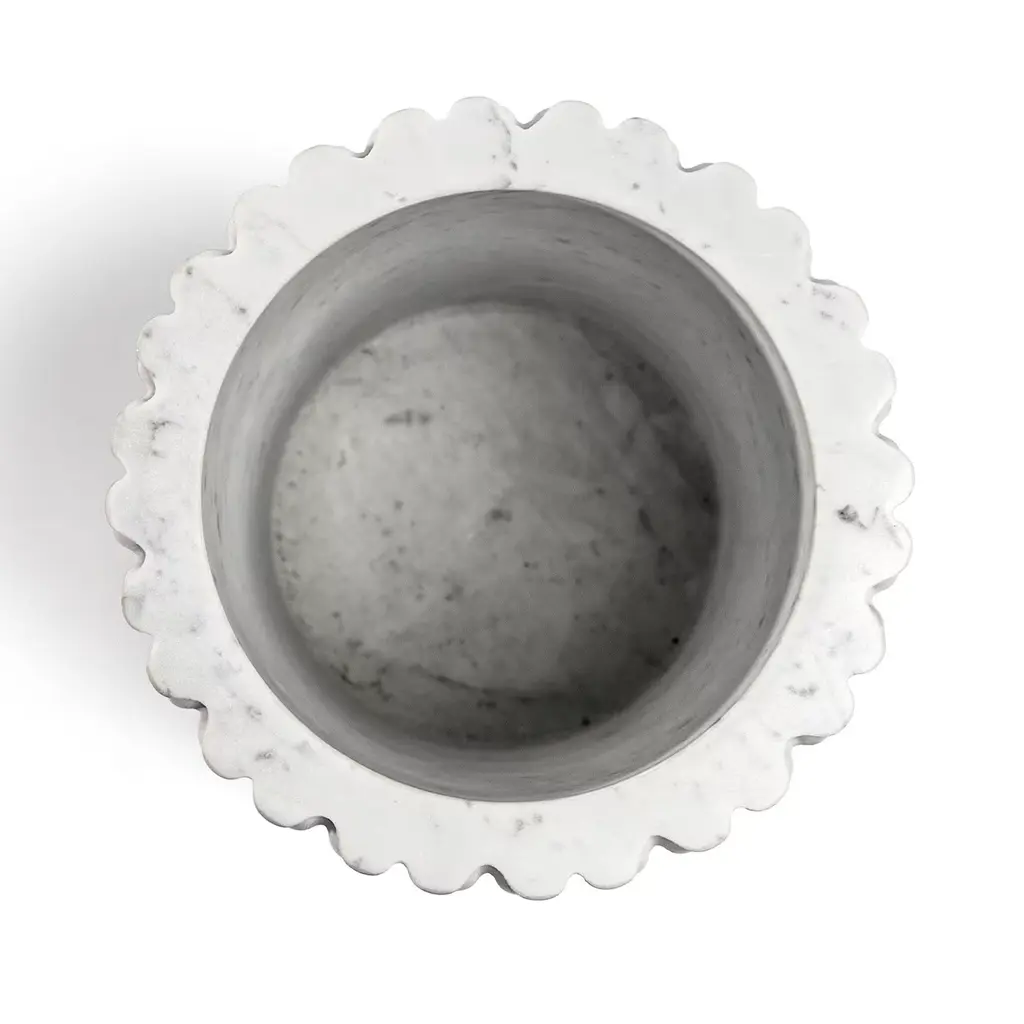 A stunning vase that will make an elegant impact in any classic or contemporary interior, this objet d'art belongs to Patricia Urquiola's Tricot Collection. Boasting a refined rib stitch knit pattern on a sleek cylinder silhouette, it is entirely crafted of sophisticated Bianco Carrara marble. The exquisite natural veins of the stone are highlighted by the incredibly textured bas relief, making this a truly refined accent piece on its own, or for showcasing a lush orchid.