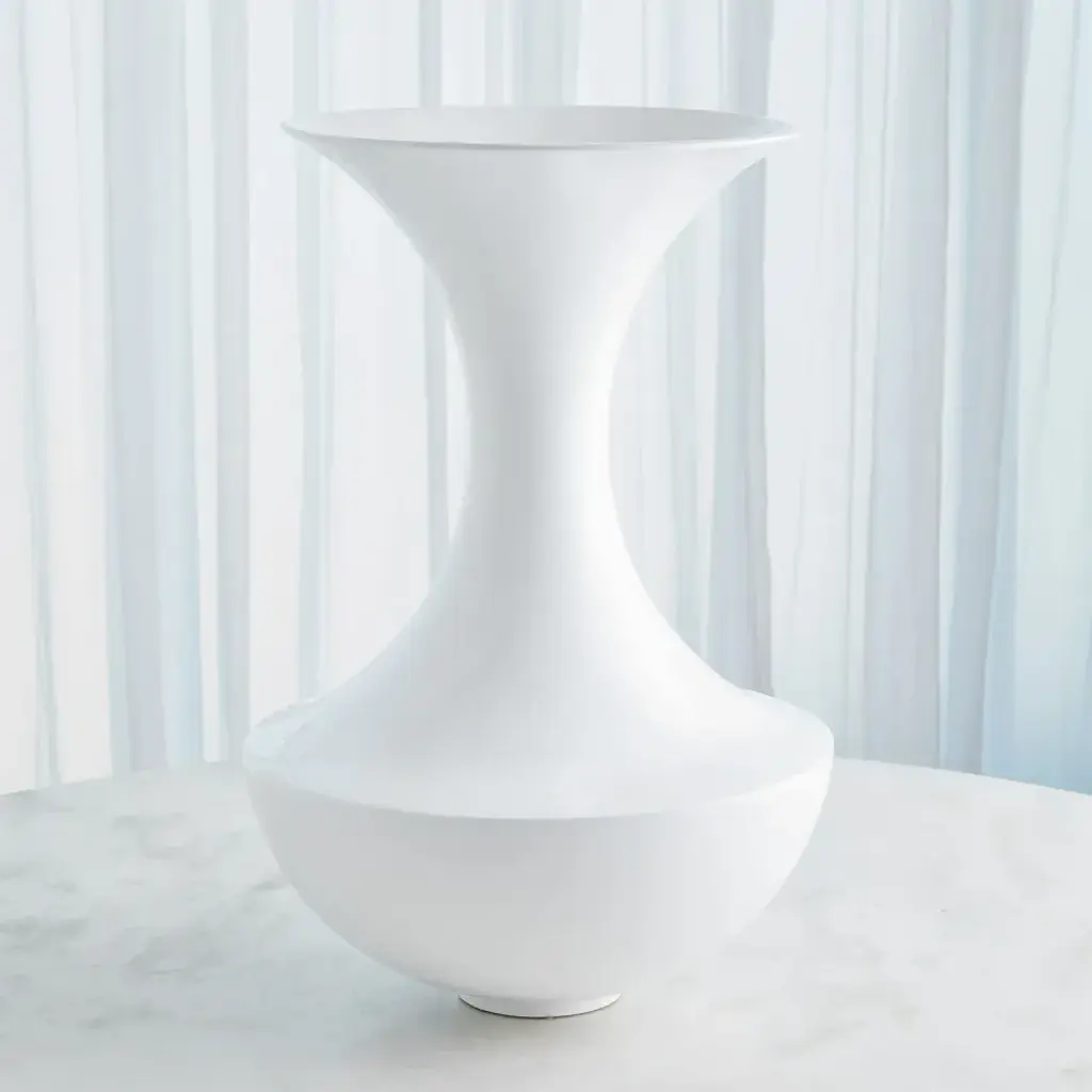The Trumpet Vase is a substantial piece crafted from Italian slip-molded ceramic, showcasing a sleek white gloss finish. Its elegant design and bold presence make it a striking focal point in any space, perfect for showcasing your favorite blooms or as a standalone decorative accent. From a fashion forward perspective, Global Views offers accessories, furniture, statement lighting, and an assortment of rugs and mirrors to add beauty and joy to your home.