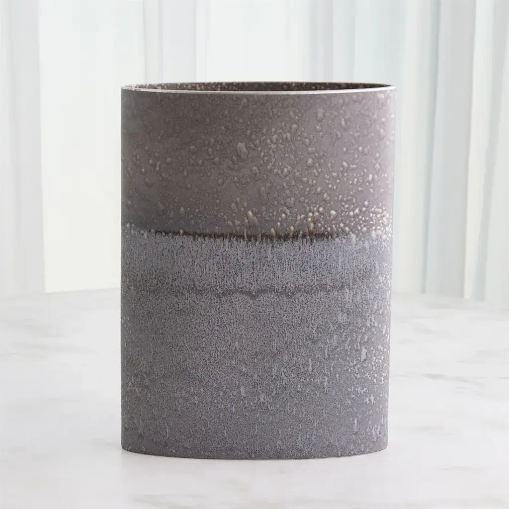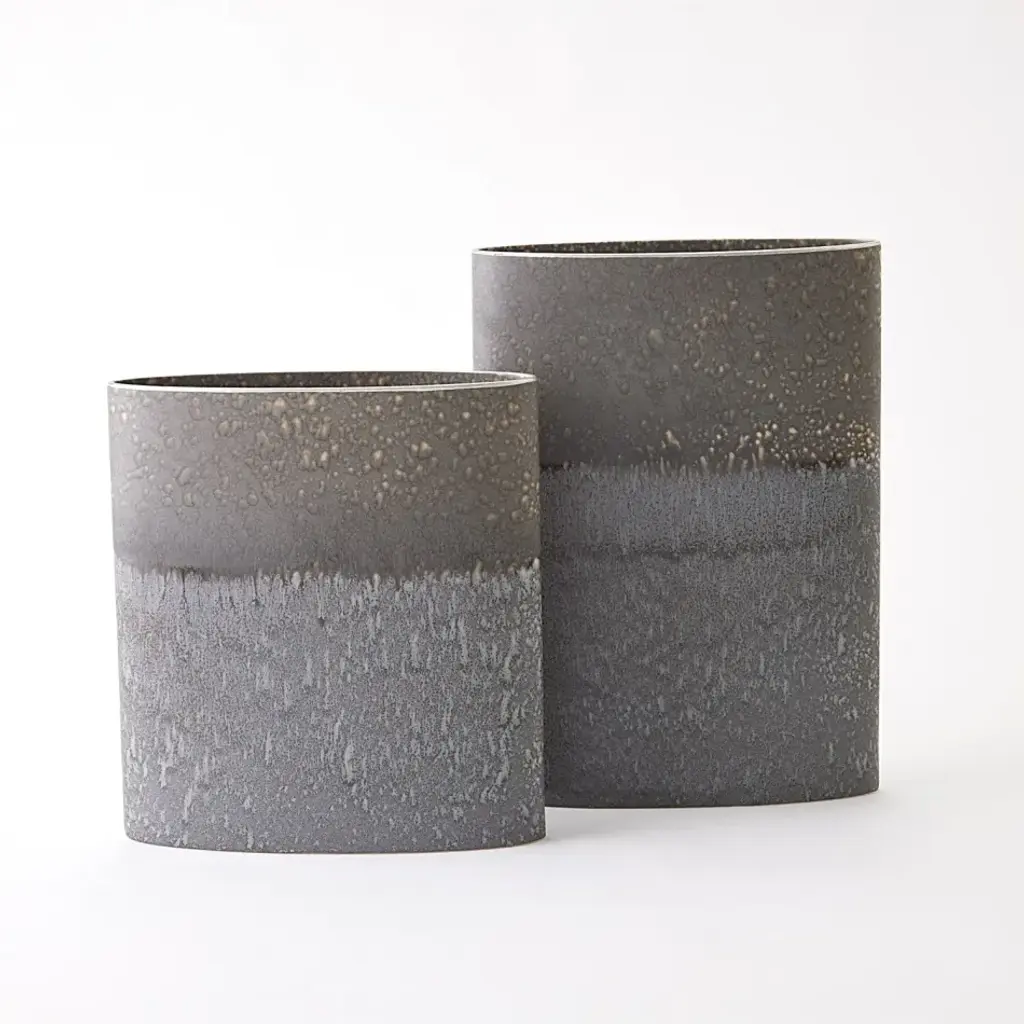 Crafted by Portuguese artisans, the Tuba Vases are slip-molded ceramic with a reactive grey finish and hand-painted silver detail. From a fashion forward perspective, Global Views offers accessories, furniture, statement lighting, and an assortment of rugs and mirrors to add beauty and joy to your home.