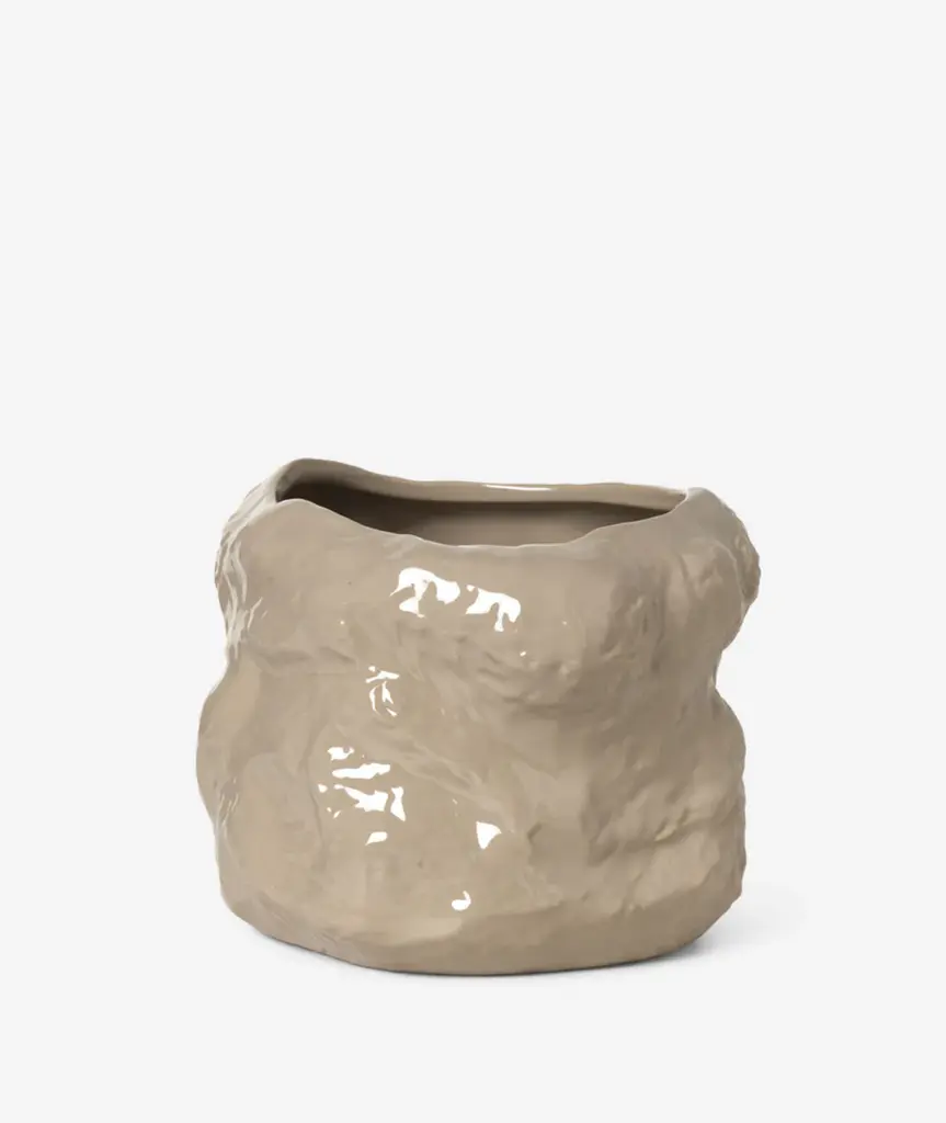 Originally shaped by hand, our Tuck Vase strikes the perfect balance between purposeful and powerful. The artistic piece is layered with a high-shine glaze in a creamy cashmere color for a light-reflecting finish that highlights its furrowed surface. Fill it with flowers or branches or let it make a solo statement on a surface in your home.
