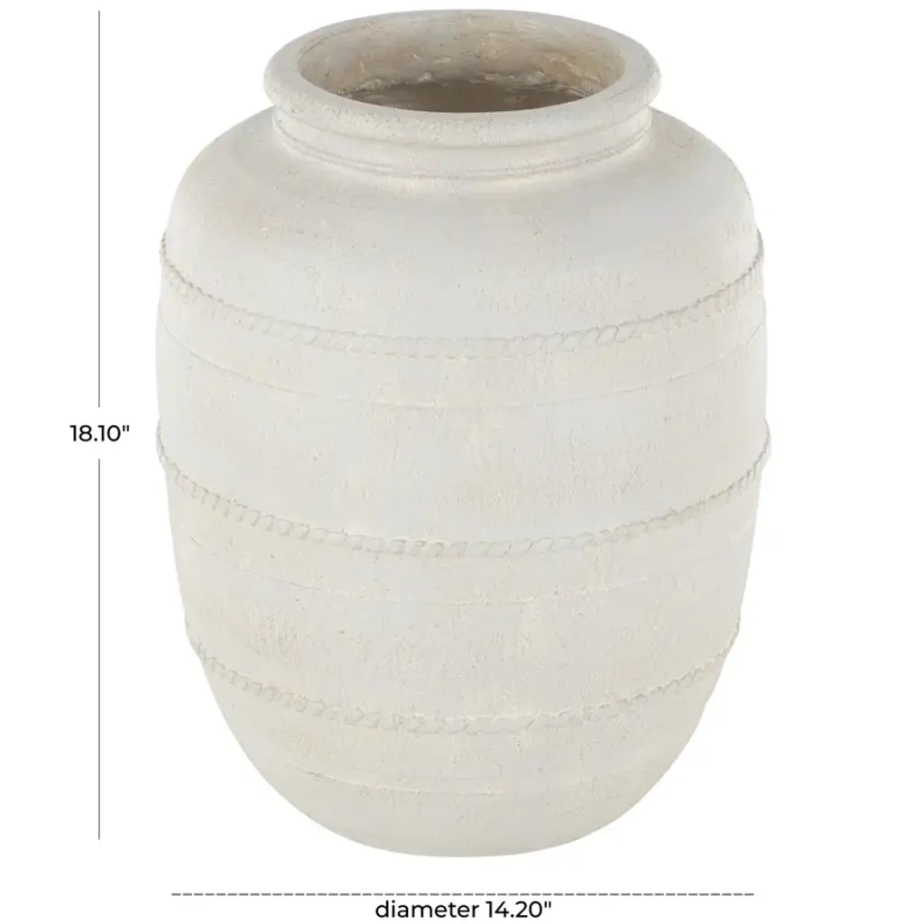 Tucson Magnesium Oxide Distressed Decorative Vase With Raised Braided Accents