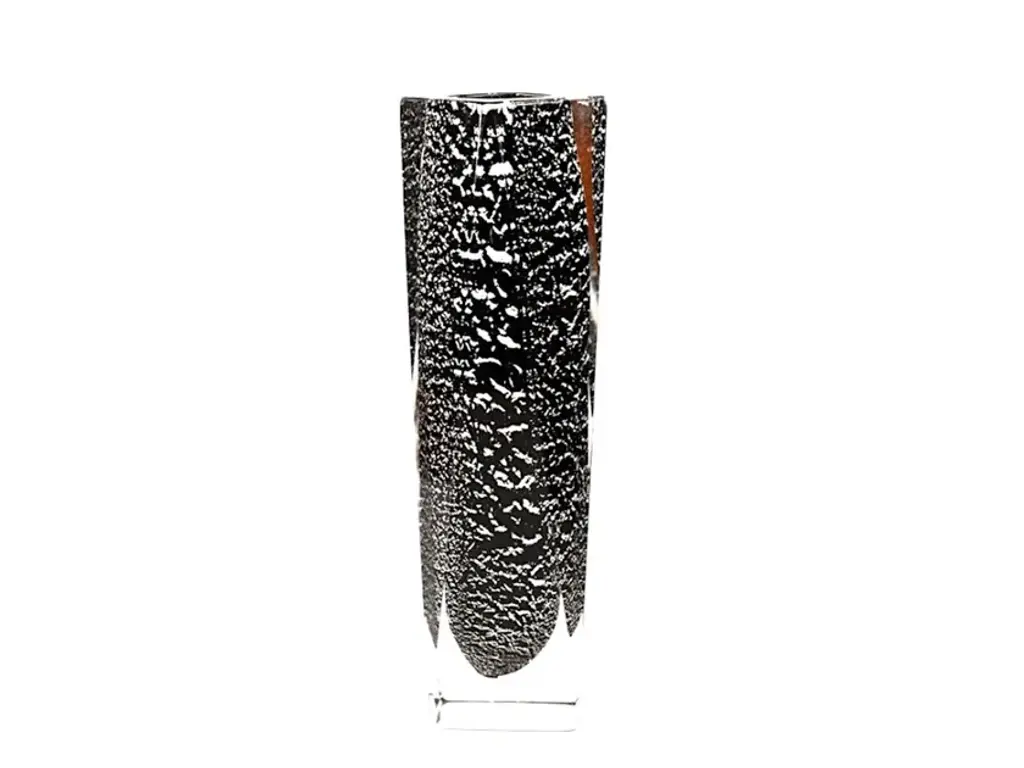 TULIPANO is a modern Murano glass vase, with black glass and silver leaf details. The modern tulip-like shape and its elegant monochrome color make this art creation a perfect way to add a touch of elegance and originality to any room. Imagine it as the centerpiece of your living room! These decorative vases are the result of the centuries-old artisanal tradition of Murano blown glass. But what happens when tradition meets innovation? These marvelous glass artworks serve as the perfect bridge between the tradition of Murano glass craftsmanship and the innovation of modern Italian design. All our products are artisanal and of the highest production quality. Non-substantial variations in shape, size, color, and/or minor imperfections are inevitable and are typical of manual glasswork, highlighting the artisanal craftsmanship.