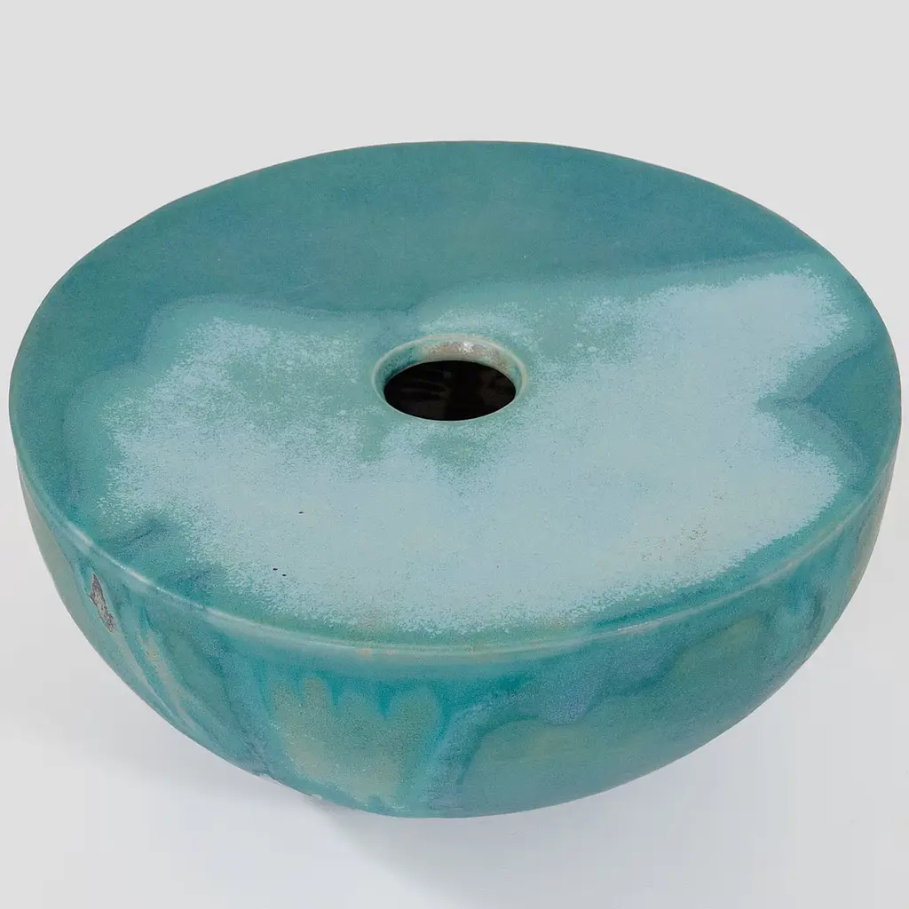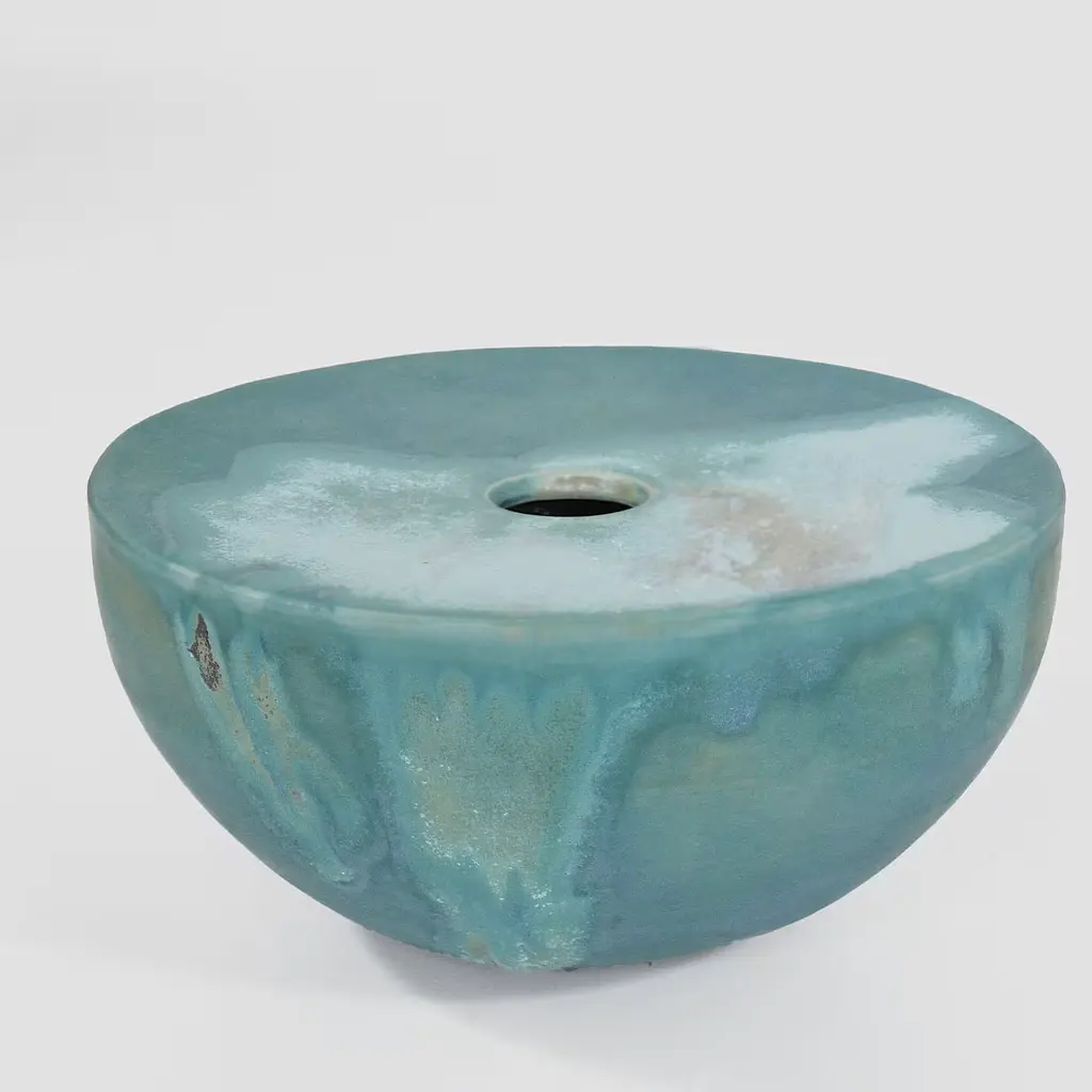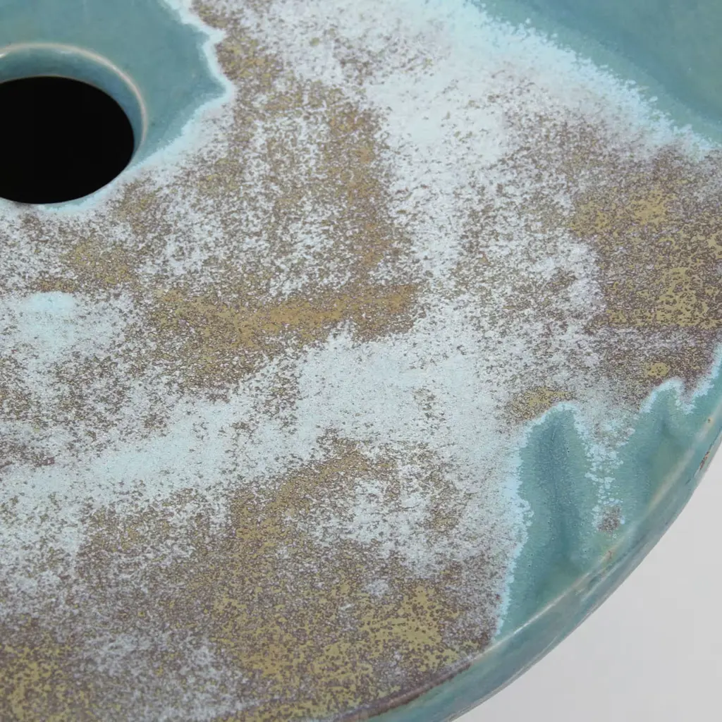 The Nebulae Vase Collection was born from the suggestions of Cosmo’s mysteries. Depending on the thickness of the splash and the background color, unexpected stain shapes, and textures arise. In the deep Turquoise vase, the nebula goes from a suffused sky blue to golden sparks. The contrast between the small opening and the large width of the semi-globe makes these vases sculptural objects, donating allure to your home décor.