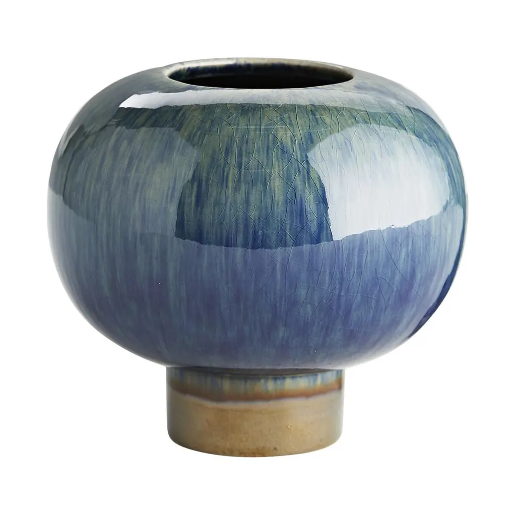 At first glance these vases may look ordinary though they are anything but. A peacock and bronze reactive glaze breaks over the porcelain ceramic to create a devastatingly beautiful aesthetic.These short and stout vases rest atop a circular platform and are watertight making them a desirable way to showcase a few bonny blooms. Finish may vary.