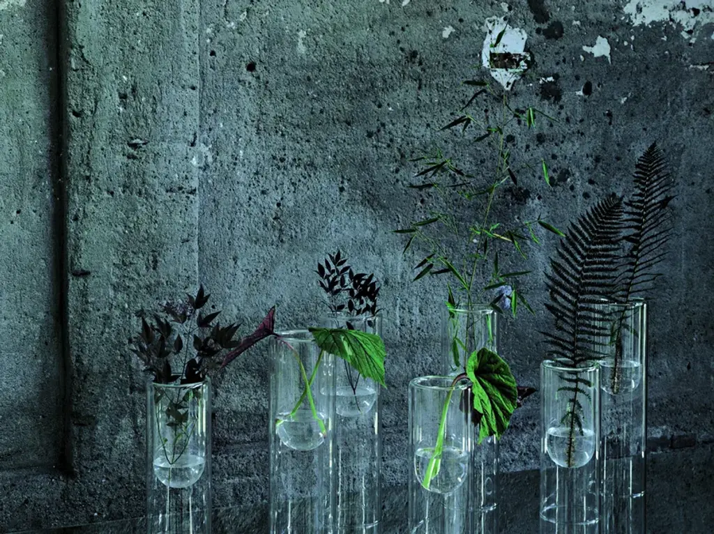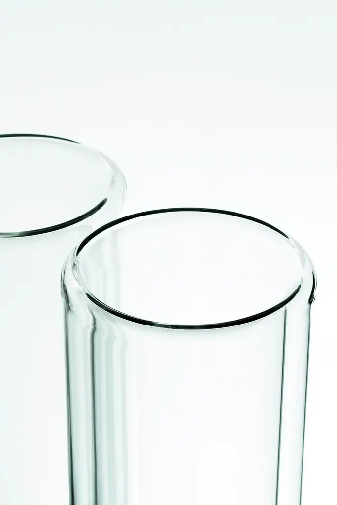 Tutube is a cylindrical vases in borosilicate transparent glass.Thanks to a complex and refined blowing manufacturing, a concavity, presenting continuity of solution with the outside, is created in the inside of the cylinder.Available in two different heights.These products, being realized in blown and hand-crafted glass, slightly differ one from each other and can present small bubbles and impurities, which are an intrinsic feature of the material and do not represent a reason for complaint.