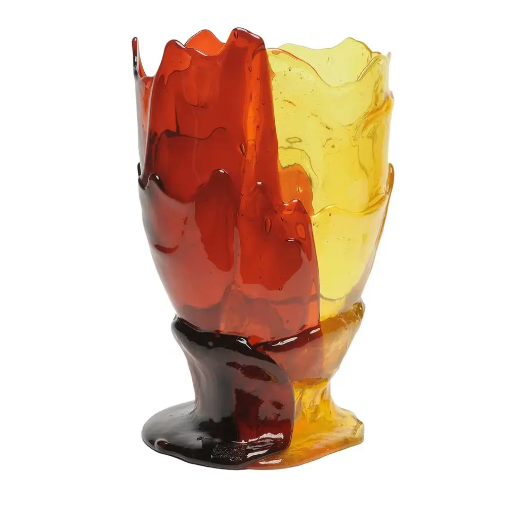 Vase in soft resin designed by Gaetano Pesce in 1995 for Fish Design collection.COLOURS: clear yellow, dark ruby* This piece will be manufactured after receiving the order, keeping the model’s references, its colours and dimensions. All the pieces are hand-made therefore unique and they won’t be exactly the same of the images provided. Slight variations in the hues and colours’ distribution are likely to happen.
