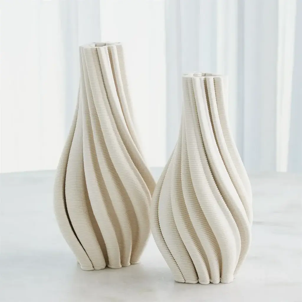 The Twist Printed Vases are a marvel of modern craftsmanship, created using cutting-edge 3D ceramic printing technology that builds layers upon layers to achieve both beauty and durability. These vases are proudly made in Portugal, showcasing the perfect blend of innovation and artistry. From a fashion forward perspective, Global Views offers accessories, furniture, statement lighting, and an assortment of rugs and mirrors to add beauty and joy to your home.