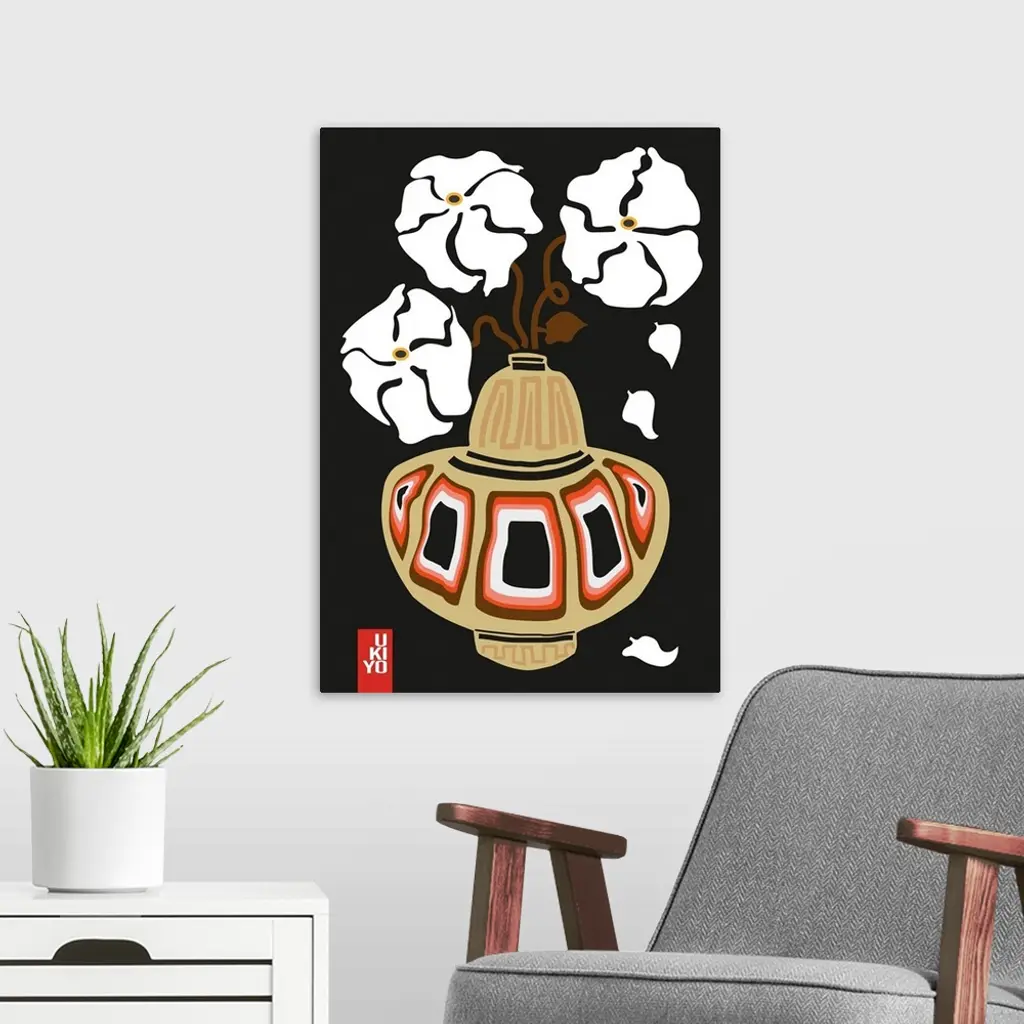 Ukiyo Vase Flower Black wall art for home and office decor. Discover canvas art prints, photos, mural, big canvas art and framed wall art in GreatBigCanvas.com's varied collections.