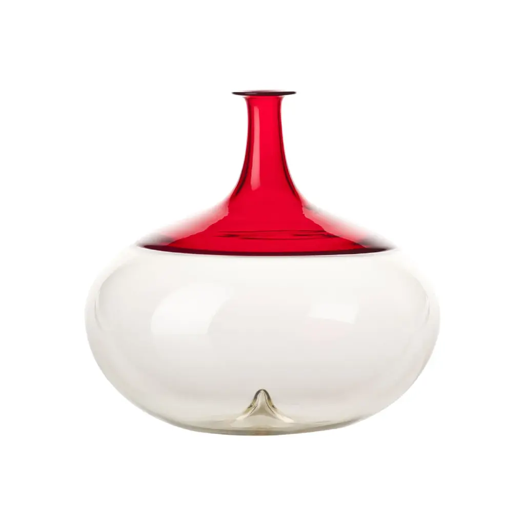 Showcase the simple beauty of a single stem with the Un Fiore 19 Vase from Zafferano. Expertly hand-blown and handcrafted in Italy from lightweight borosilicate glass, this delicate piece is a work of art. Its minimalist form is elevated by a colorful thread of glassy paste along the rim, adding a subtle, refined touch. Perfect for a small bouquet or even left unadorned, it brings a touch of joyful, effortless elegance to any corner of the home. Highlights
