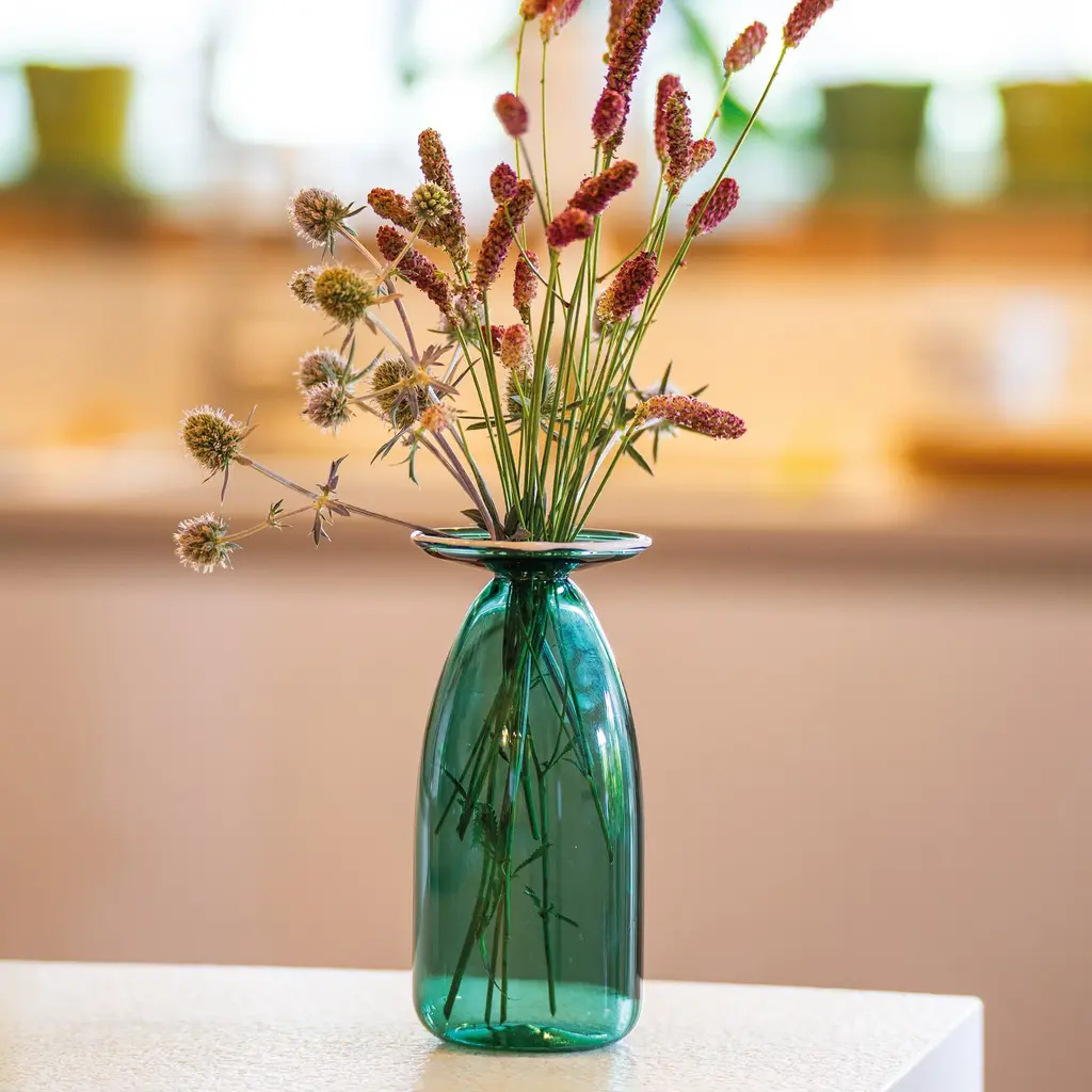 Gracefully display long-stemmed flowers with the Un Fiore 22 Vase from Zafferano, a testament to sophisticated simplicity. Expertly hand-blown and handcrafted in Italy from lightweight borosilicate glass, this piece features an elegant, flared opening designed to create light and delicate arrangements. The rim is accented with a colorful thread of glassy paste, adding a subtle, artisanal charm to its refined silhouette and bringing a touch of joyful beauty to any surface. Highlights