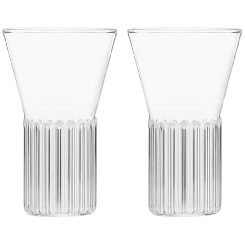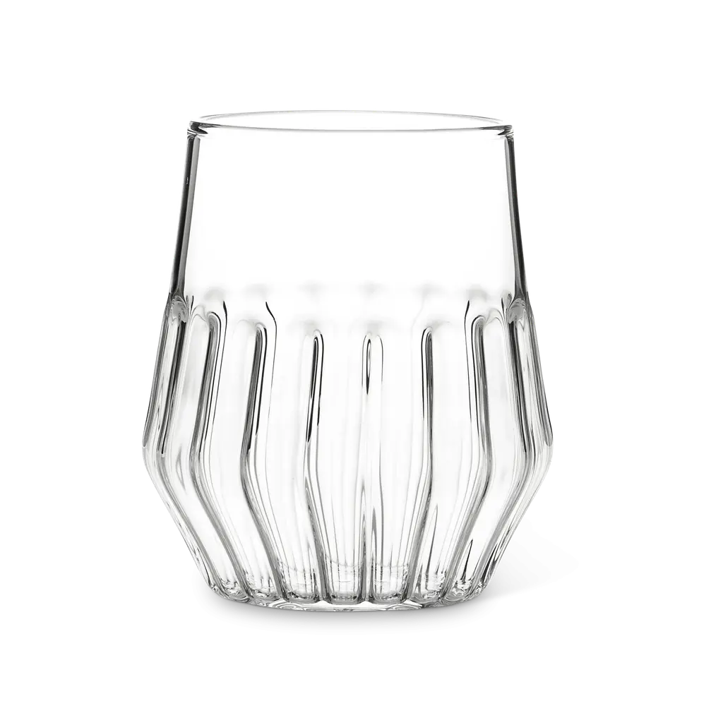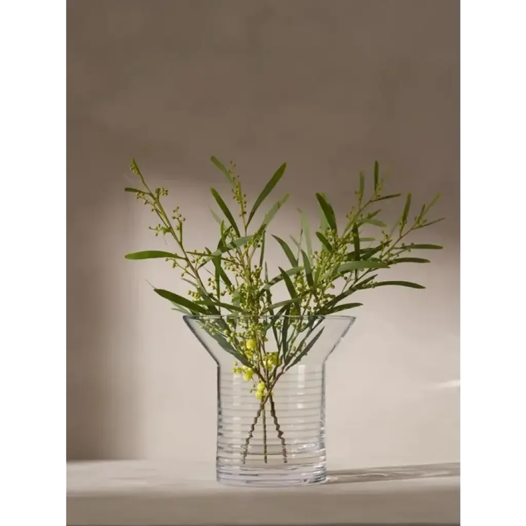 A contemporary mouth-blown vase/lantern that combines a finely ribbed body with a smooth flared collar. Suitable for displaying medium sized bouquets or using as a lantern to create refracted ambient candlelight.