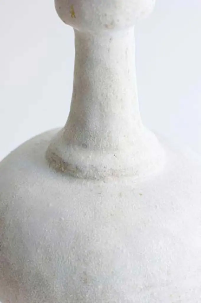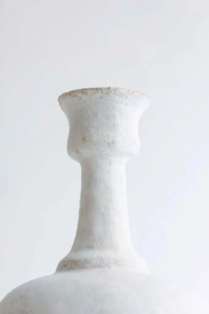 Unique Arq 011 Blanco, Hueso vase by Raquel Vidal and Pedro PazDimensions: Ø 15.5 x 27 cmMaterials: hand-sculpted glazed stoneware.The Arq series emerged from our own past production. Drawing its inspiration from the field of archaeology, it takes certain significant vases from previous collections and modifies them. This reworking is based on the idea of rhizomatic design, that is to say, the idea of a structure whose modifications may arise at any point and in which any element may have an effect on any other. This living atlas has an open body that keeps growing as we continue working on new series and vases.Raquel Vidal and Pedro Paz craft pottery and jewelry that seeks to preserve ancient techniques and aesthetics. Their work is defined by a deep respect for materials, metal and clay being the primary raw materials with which they work. Both of these elements have been used since the beginning of humanity to not only make tools and supplies but also for creating objects to contemplate and connect with our bodies and environment. Pottery and jewelry have worked together in each society’s development, mutating and showing the interests, needs and concerns of a given era.Raquel and Pedro believe these ancient arts also help us understand our ancestors, get closer to them and experience how they felt materials and shapes. The material connections between metal and clay are also of interest. Both materials have long and slow production processes and an intimate connection with fire, a somewhat rebel and magic element, that humanity has always craved to control.This belief that materials and the processes applied to them can transform the artist into a restorer of old sensibilities is foundational for Raquel and Pedro. Every piece is crafted slowly and methodically, there is no rushing in the process, and with a respect for the natural worl's own "will" to produce its own results.