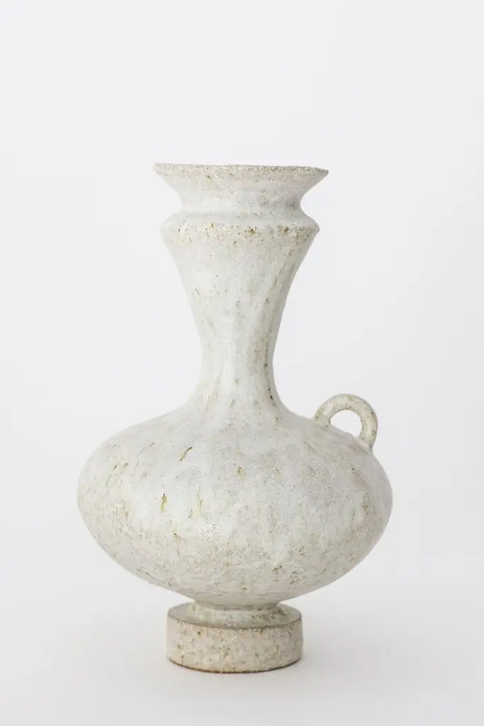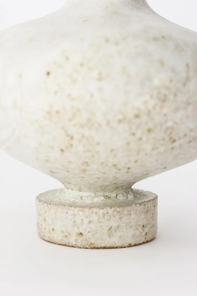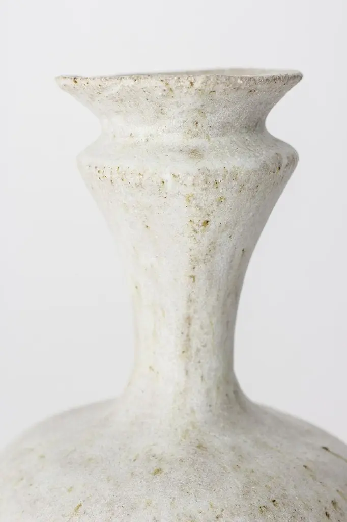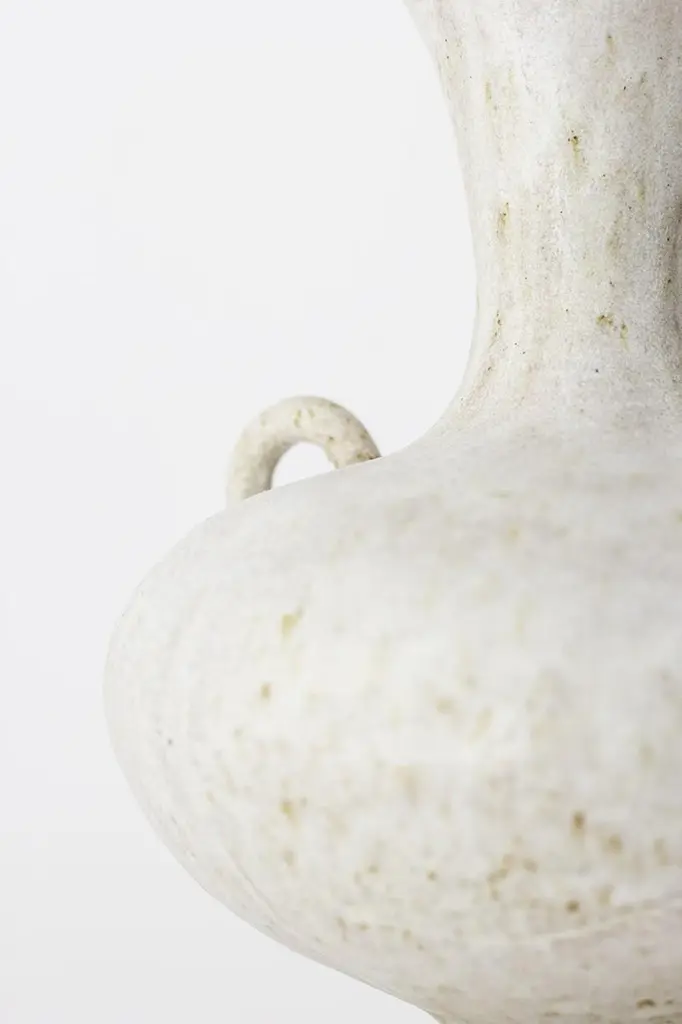 Unique Arq 006 vase by Raquel Vidal and Pedro PazDimensions: Ø 15 x 23 cmMaterials: hand-sculpted, glazed potteryThe pieces are hand built white stoneware with grog, and brushed with experimental glazes mix and textured surface, resulting in slight variations with each piece. No watertight. Made in Valencia, Spain.Raquel Vidal and Pedro Paz craft pottery and jewelry that seeks to preserve ancient techniques and aesthetics. Their work is defined by a deep respect for materials, metal and clay being the primary raw materials with which they work. Both of these elements have been used since the beginning of humanity to not only make tools and supplies but also for creating objects to contemplate and connect with our bodies and environment. Pottery and jewelry have worked together in each society’s development, mutating and showing the interests, needs and concerns of a given era.Raquel and Pedro believe these ancient arts also help us understand our ancestors, get closer to them and experience how they felt materials and shapes. The material connections between metal and clay are also of interest. Both materials have long and slow production processes and an intimate connection with fire, a somewhat rebel and magic element, that humanity has always craved to control.This belief that materials and the processes applied to them can transform the artist into a restorer of old sensibilities is foundational for Raquel and Pedro. Every piece is crafted slowly and methodically, there is no rushing in the process, and with a respect for the natural worl's own "will" to produce its own results.