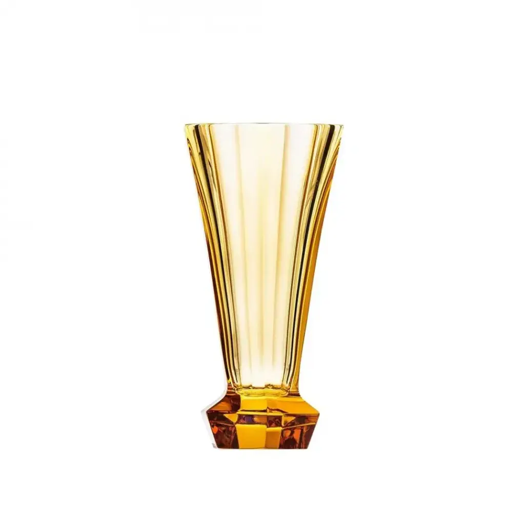 The crystal glass Unity Vase enlivens every interior, whether it boasts a modern or classic style. Traditional Moser colours further accentuate the confident silhouette and hand cut of this timeless vase. Founded in 1857, Moser boasts a long tradition of superior artistic and technical standards in lead-free crystal. The quality of the crystal and perfection of Moser's hand cutting, engraving, gilding and brilliant colors are unsurpassed by any contemporary glass or crystal company in the world. Created by Ludwig Moser & Sons, the line originated as an engraving studio in the spa town of Karlsbad, located in Bohemia (now the Czech Republic), a region with deep roots in superior glass-making. During the late 19th and early 20th centuries, Moser developed its now famous technically perfect crystal production, employing a unique formula for producing a substance as hard as rock and as brilliant as lead crystal - but without using a trace of lead. This composition is very suitable for Moser's marvelous engravings, is ecologically sound and remains free of all concerns associated with lead. Moser's innovative techniques in cutting, engraving and coloring quickly won the line great acclaim at many prestigious international art exhibitions. Soon Moser became the proud possession of royalty, heads of state and well-known personalities throughout the world, an esteemed reputation that has held fast and continues to grow now in the 21st century. Today, Moser produces a wide range of stem and barware, holloware, accessories, giftware and art glass, all showcasing the superior quality, innovation and remarkable artistic expression for which the line has long been recognized.